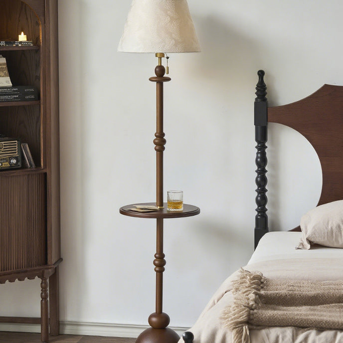 The Gibson Floor Lamp from Mooijane artfully combines solid wood craftsmanship with a soft fabric shade to create a warm, inviting atmosphere. Its clean, flowing lines and central round table add both functionality and visual depth. Emitting a gentle, comfortable glow, it enhances living rooms, bedrooms, or studies with a cozy, elegant touch—perfectly blending practicality and refined design.