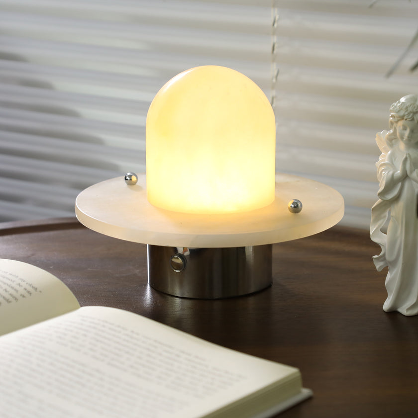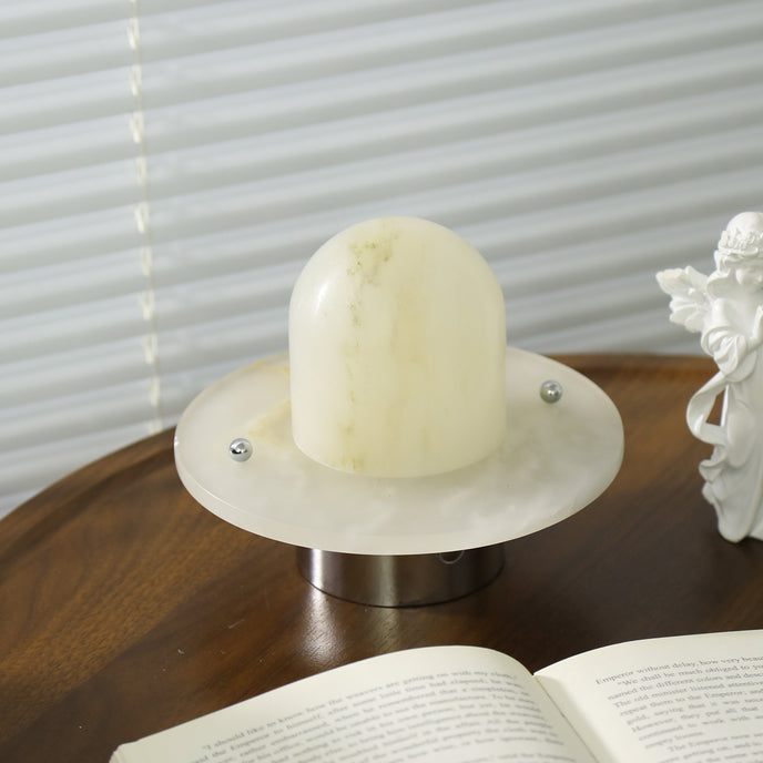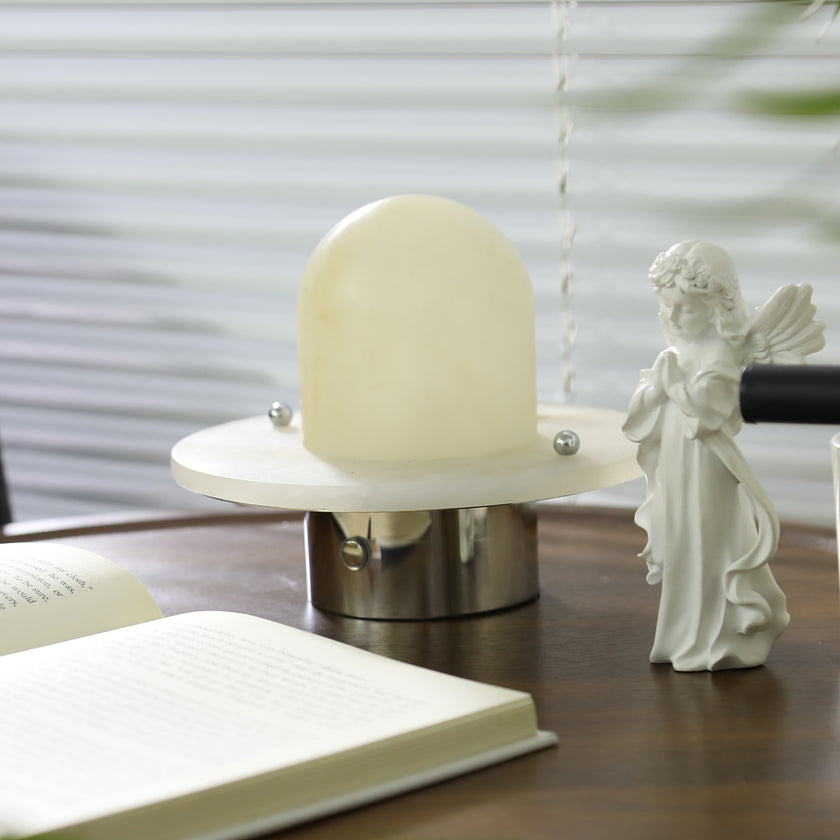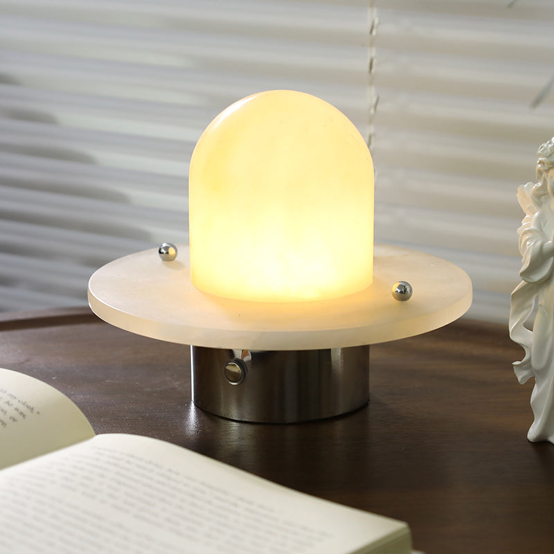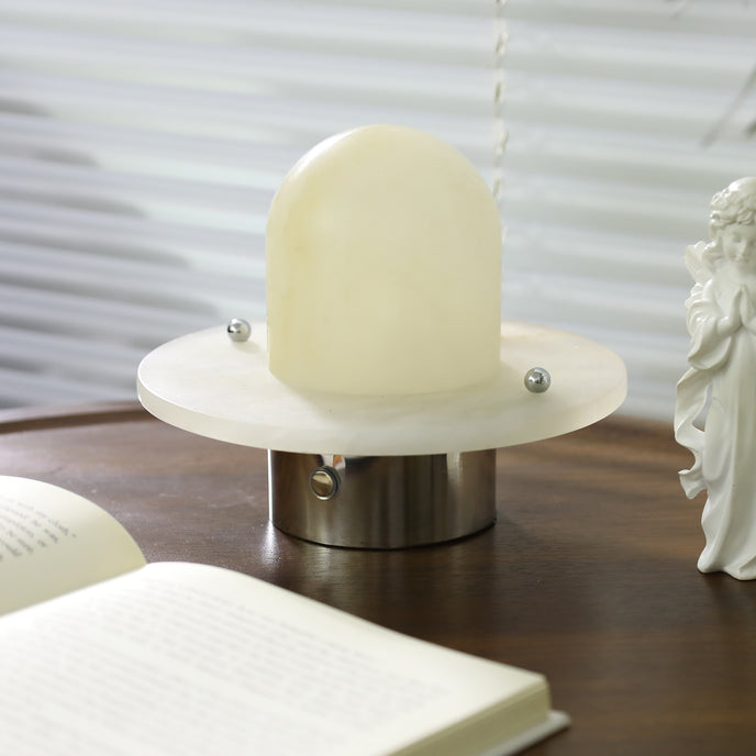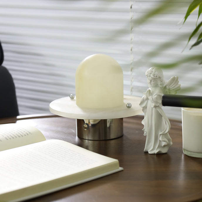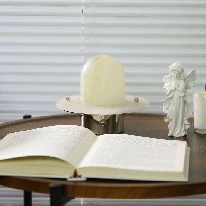 The Jamie Table Lamp from Mooijane pairs a genuine alabaster dome diffuser with a sleek stainless steel base, blending durability with modern elegance. Its natural alabaster texture casts a soft, warm glow, enhancing any space with refined style. Practical, stylish, and compact, it offers sophisticated illumination wherever it’s placed.