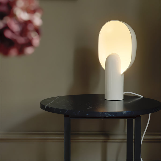 Khasseh Schreibtischlampe hat ein sehr schlichtes und stilvolles Design. Der runde Schirm verdeckt das Leuchtmittel und streut das Licht auf angenehme Weise. Wenn die Leuchte eingeschaltet ist, erscheint in den Schichten des Schirms eine Tiefe, die eine Einheit von Licht und Dunkelheit schafft. Eine schöne Lampe, die perfekt auf dem Schreibtisch, Couchtisch oder Nachttisch ist.