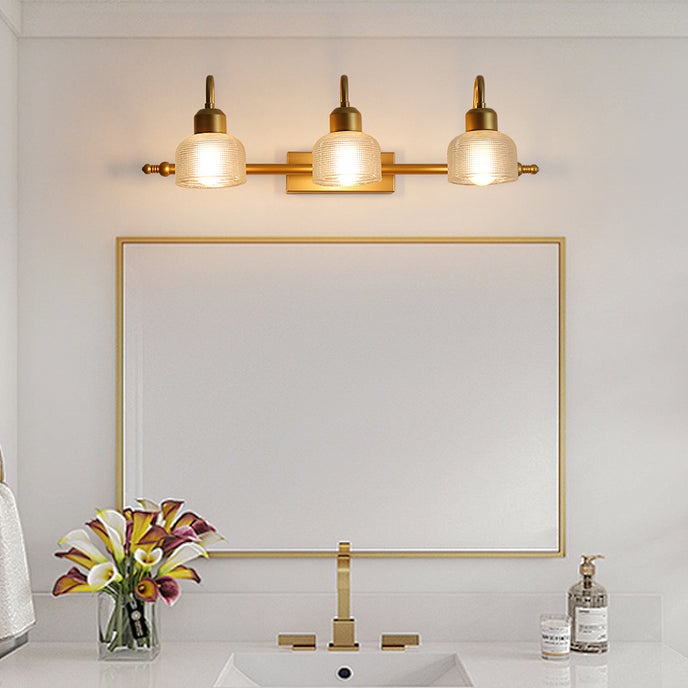 The Lottie Wall Lamp by Mooijane embodies modern elegance with its clean lines and brushed gold finish. Crafted from premium metal, it offers a warm, refined sheen complemented by gently curved glass shades with a delicate textured pattern. The result is a soft, layered glow that enhances both comfort and sophistication. Perfect for bathrooms, hallways, or bedrooms, this wall lamp blends subtle luxury with timeless contemporary style.