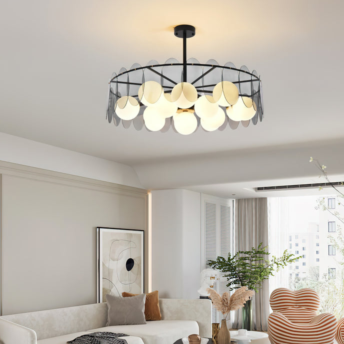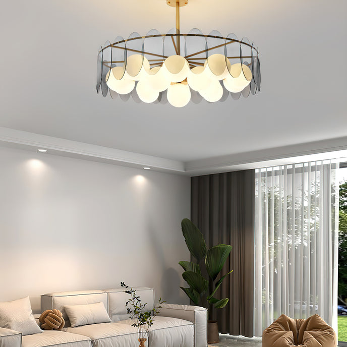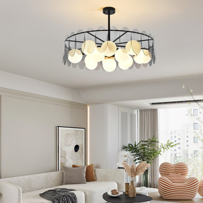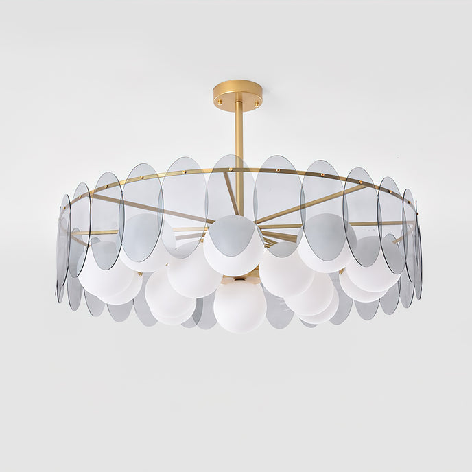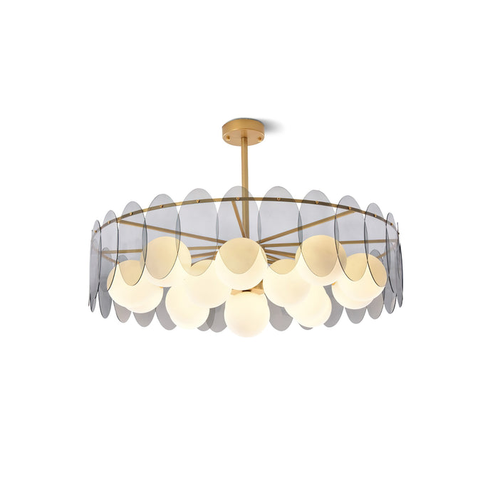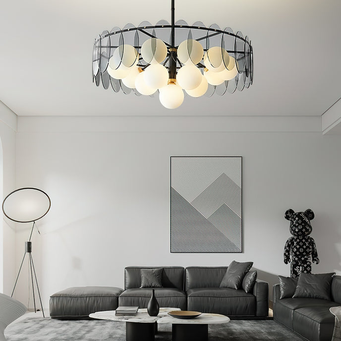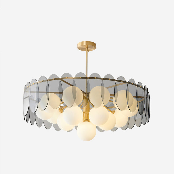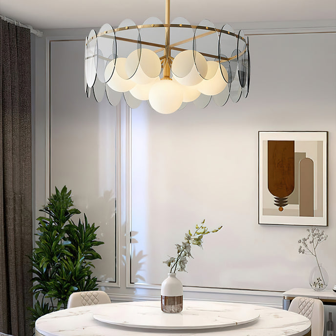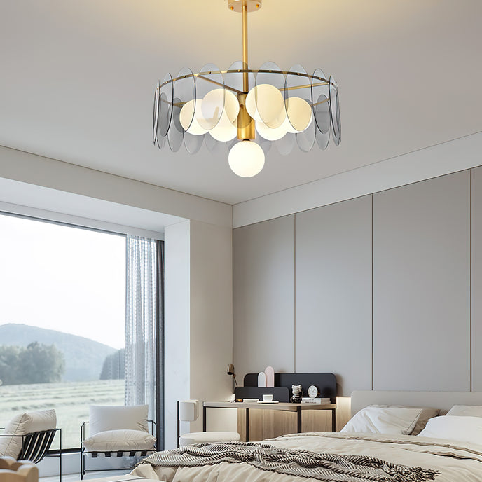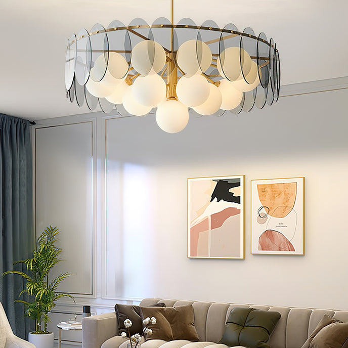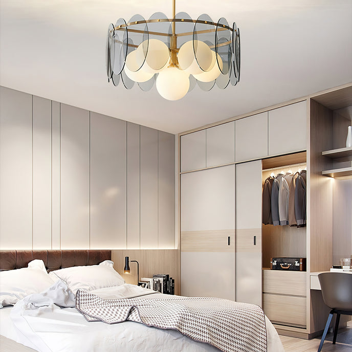 Die Molecular Glass Sphere Pendelleuchte strahlt modernes Design mit einer runden Glaskugel aus, die an einer Messingpendelleuchte hängt. Sein skandinavischer Stil ist die perfekte Ergänzung für jeden Raum, der einen modernen Touch sucht.