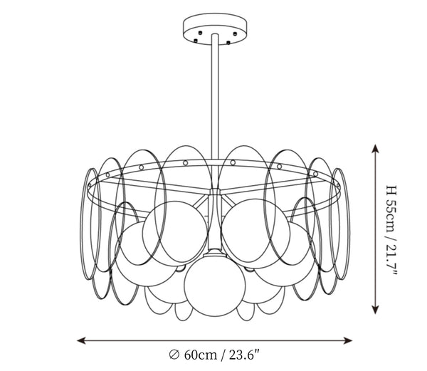 - 6 Köpfe Durchmesser 50 cm x H 55 cm / ∅ 19,7″ x H 21,7″