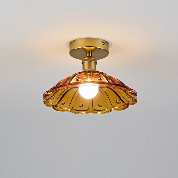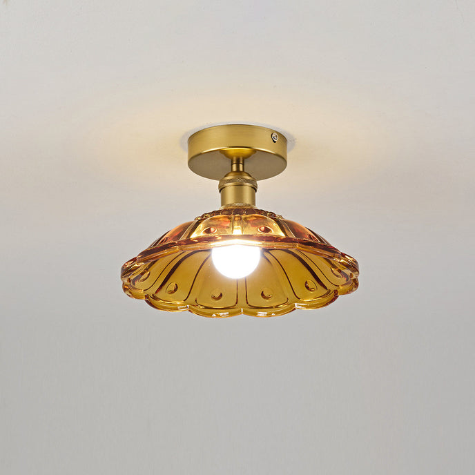 The Moncia Ceiling Light from Mooijane features a classic petal-inspired silhouette that blends vintage charm with everyday elegance. Its sculpted glass shade softly diffuses light, creating a warm, inviting glow. Crafted with a durable iron and aluminum structure and refined metal detailing, this flush mount is ideal for bedrooms, hallways, entryways, or dining areas, adding subtle character and timeless appeal to any space.