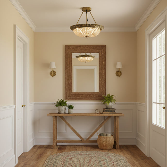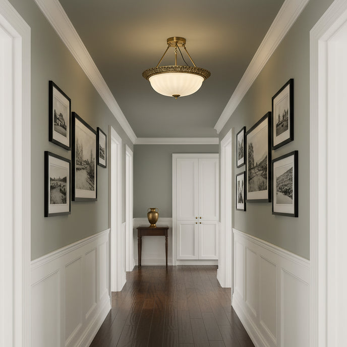 Experience timeless elegance with the Montego Ceiling Lamp from Mooijane. Crafted with a brass finish and opal glass diffuser, this semi-recessed fixture is both beautiful and functional. Elevate any space with its classic shape, and enjoy its durability and easy installation in hallways and entryways.