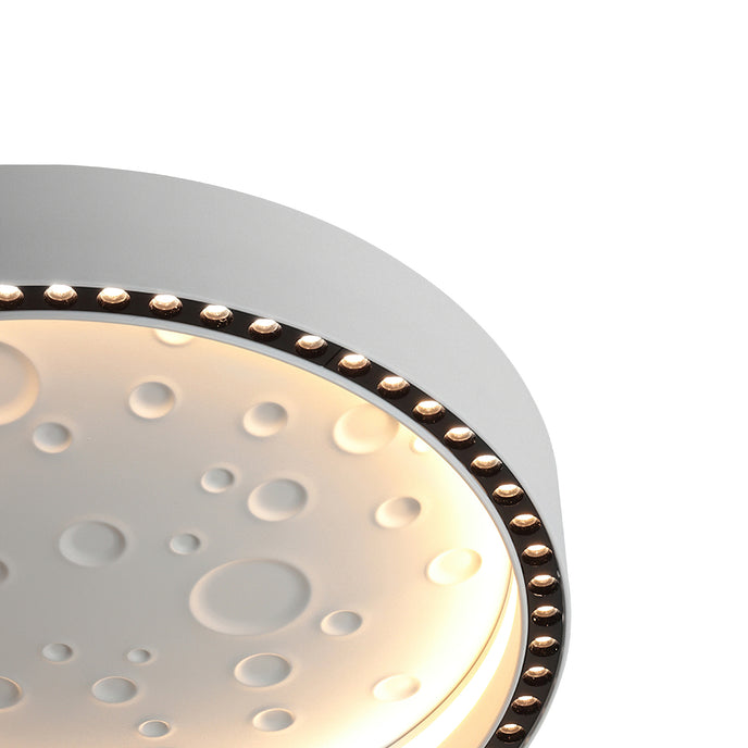 Die Mond-Deckenleuchte hat ein einzigartiges Design mit weichem Innenlicht und versteckten äußeren Lichtperlen. 360°-Rundumlicht, hoher CRI. Der Lichtleiterstreifen ist zum Schutz der Augen innen angebracht. Hergestellt aus dickem Aluminiummaterial, rostfrei und hochtemperaturbeständig, voller Textur. Die einzigartige Mondoberfläche, kombiniert mit kreativer Kunst, lässt Müdigkeit und Staub verschwinden. Sanftes Licht schafft eine friedliche Atmosphäre und fügt sich auf natürliche Weise in das Zuhause ein.