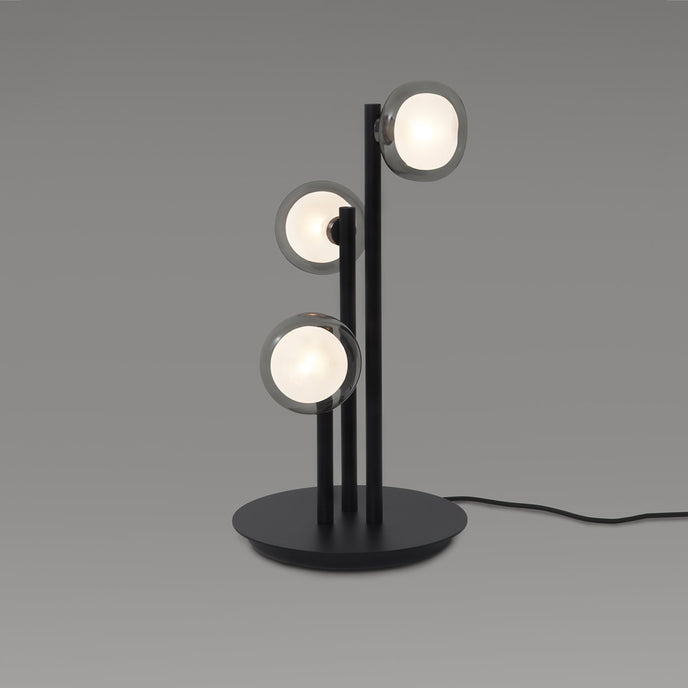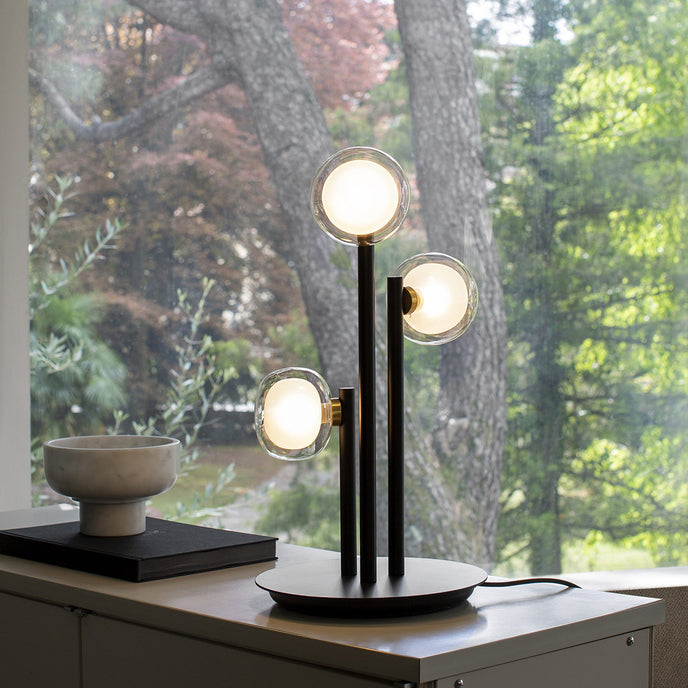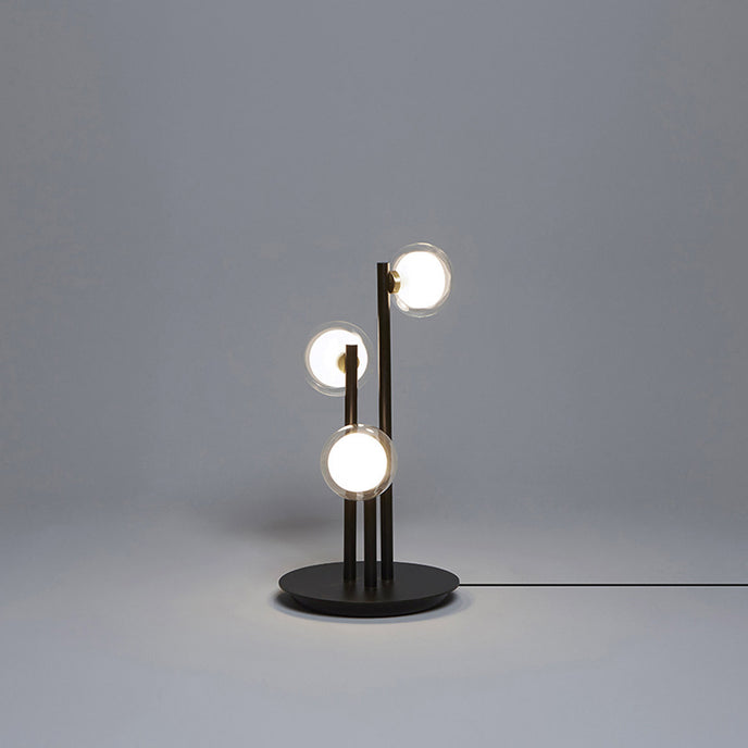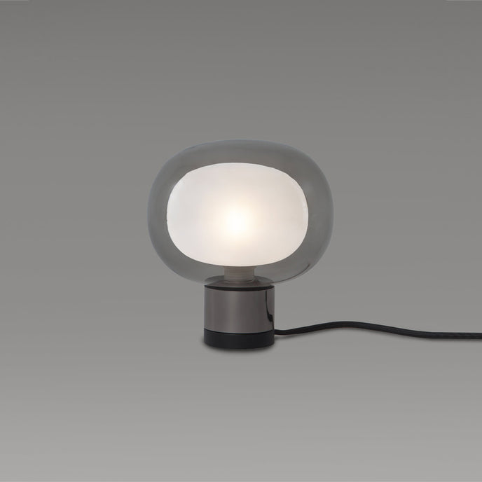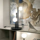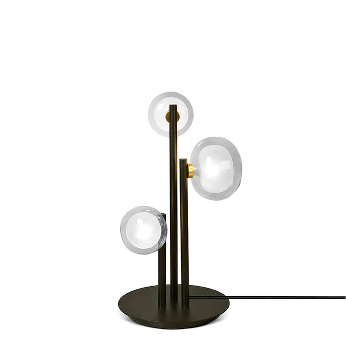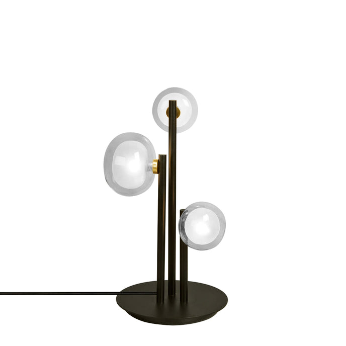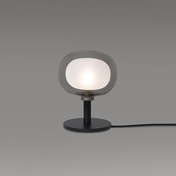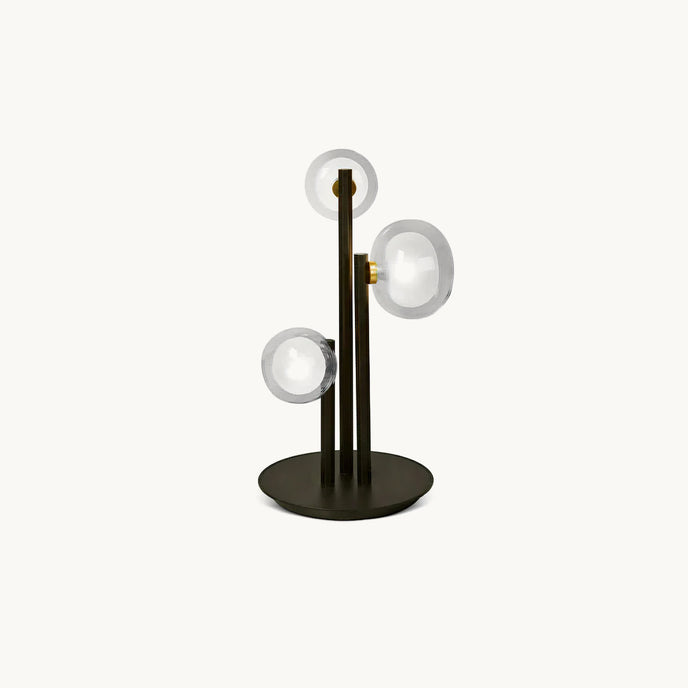 Die elegante Raffinesse der Nabila-Tischlampe ist inspiriert von der Suche nach dem Weltraum in den 1950er Jahren. Nabilas doppelseitiger, kugelförmiger Rahmen in Mattschwarz mit schwarzen Chromakzenten und Scheiben aus rauchfarbenem Borosilikatglas oder Mattschwarz mit Scheiben aus gebürstetem Messing und klarem Borosilikatglas ist dem Sputnik nachempfunden und verleiht einem modernen Interieur eine einzigartige Note. Platzieren Sie ihn im Eingangsbereich oder über dem Esstisch, um Ihre Ästhetik zu vervollständigen.