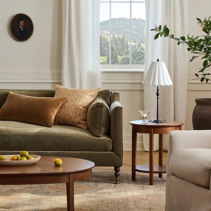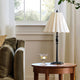 The Nerita Table Lamp by Mooijane draws inspiration from Art Nouveau, featuring organic, flowing forms reminiscent of flower stalks and vine tendrils. Its sleek stem with turned metal detailing supports a scalloped or smooth fabric shade that diffuses soft, inviting light—perfect for adding elegance to bedrooms, living rooms, or study spaces.