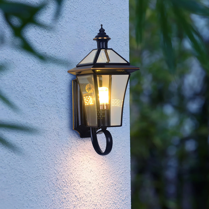 Bringen Sie Stil und Eleganz in Ihren Außenbereich mit dieser hochwertigen Gartenlaternen-Wandleuchte. Das aus Kupfer gefertigte Licht sorgt für einen luxuriösen Look und sorgt für ein warmes, einladendes Licht, das jeder Umgebung ein Gefühl von Komfort und Eleganz verleiht. Machen Sie Ihre Gartenabende heller und schöner.