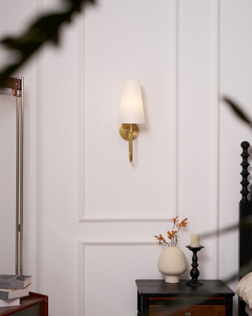 With all the hallmarks of the vintage European fixture that inspired it, our sconce makes a refined statement wherever it hangs. Each detail is thoughtfully considered, from the graceful swooping arm to the beautifully grooved details.