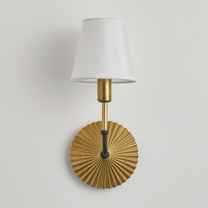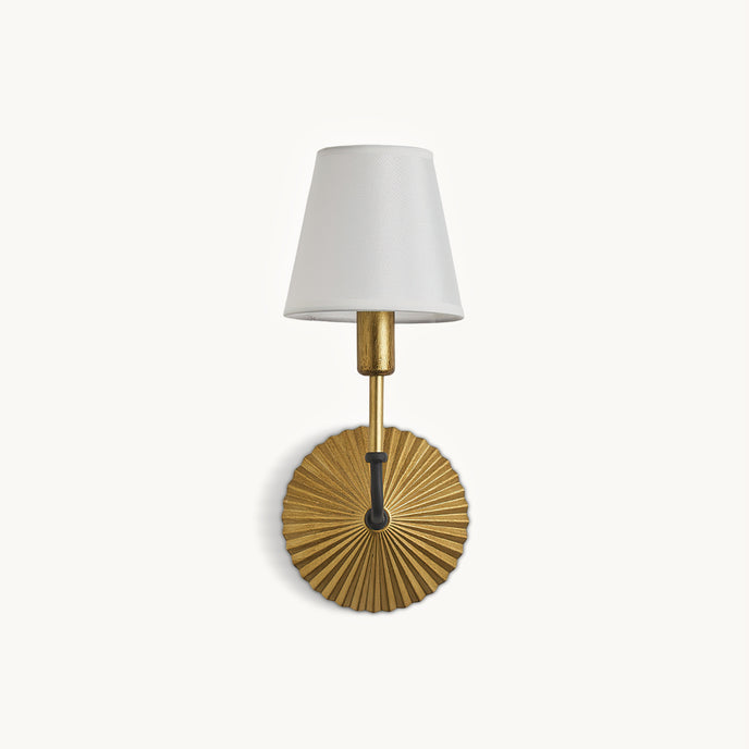 Crafted in vintage style, the Parasol Wall Lamp by Mooijane is a stunning addition to any interior. The metal base features a scalloped texture that creates an eye-catching focal point, while the soft fabric shade adds warmth. The gently curved arm completes the design, combining form and function. Perfect for any living space, this lamp emits a soft, inviting glow to create a warm and sophisticated ambiance.