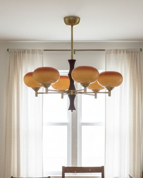 Elevate your home decor with our Mooijane Persimmon Chandelier. Made from premium wood and metal, its old-world charm and modern design add a touch of glamour to any room. It emanates a soft, inviting light, creating a warm and inviting atmosphere. Experience luxury and attention to detail in your space.