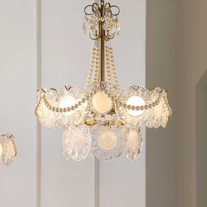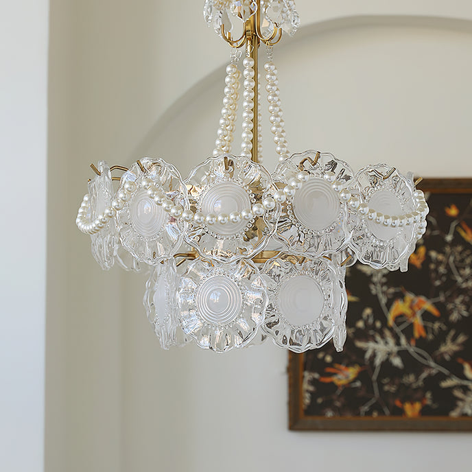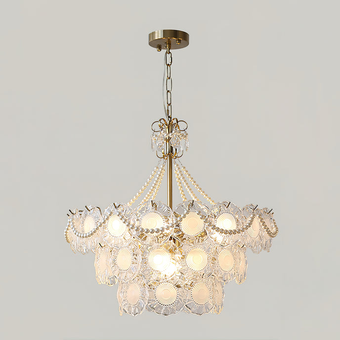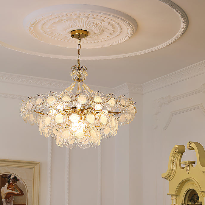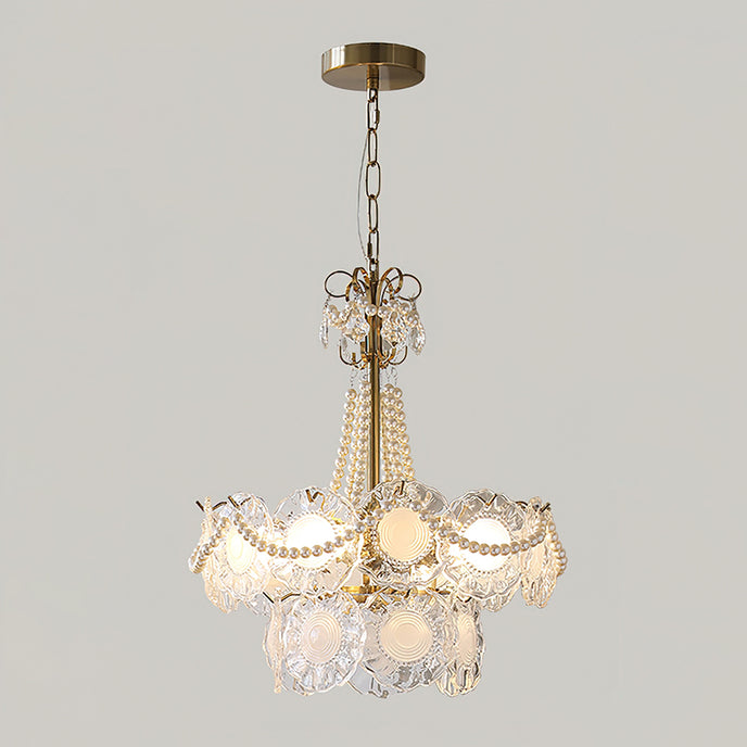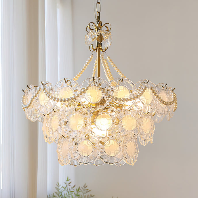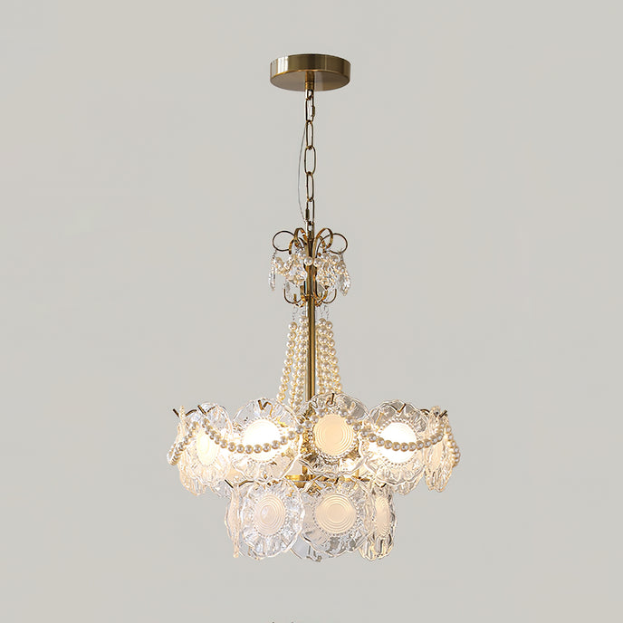 Bring timeless beauty to your home with this beautiful Pertid Pearls Chandelier from Mooijane. Crafted from sleek glass with a modern gold finish, this sleek, modern chandelier will add a sophisticated touch to any room. Its design provides ample lighting and makes a statement, making it the perfect addition to your home for years to come.