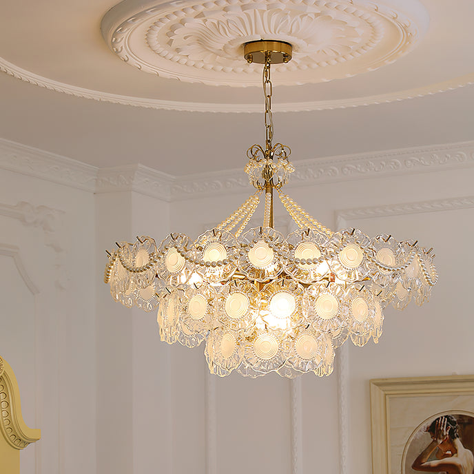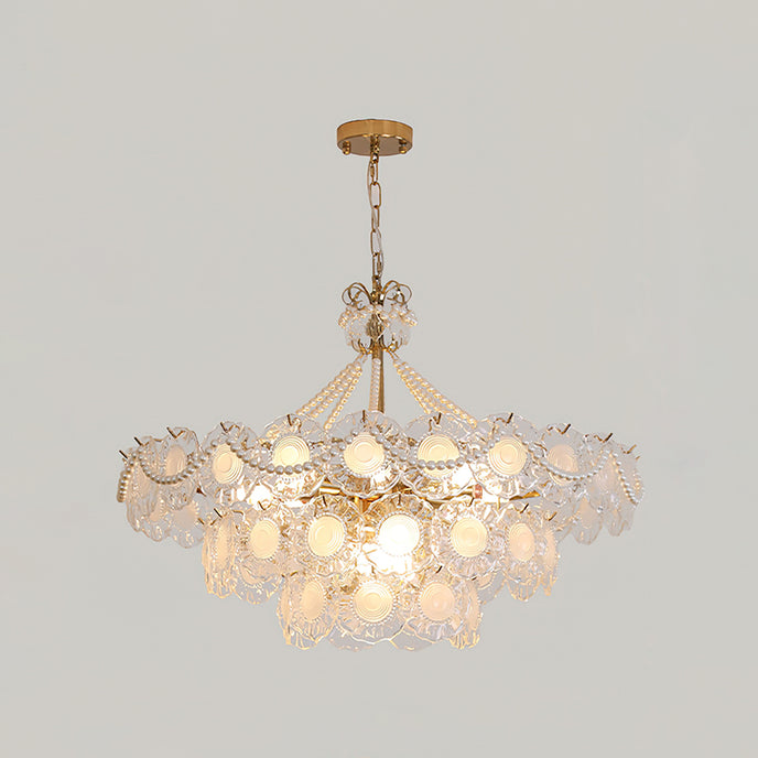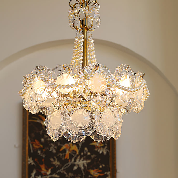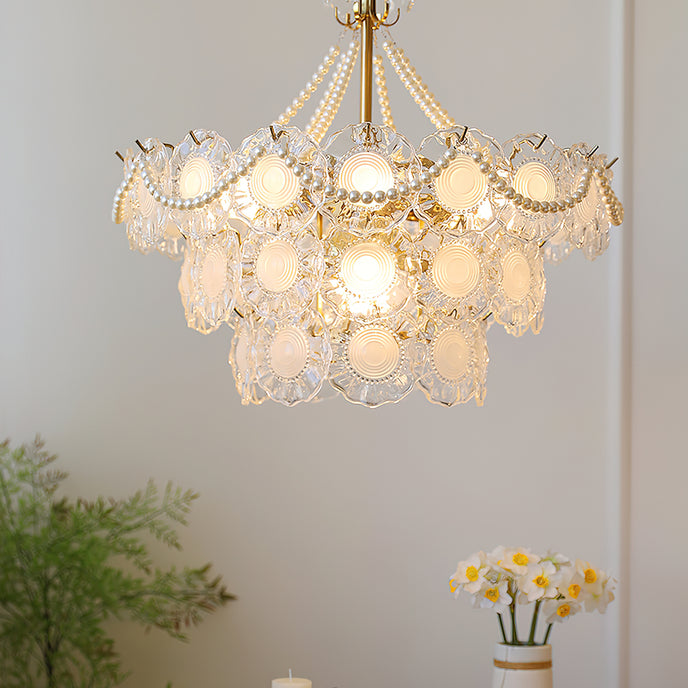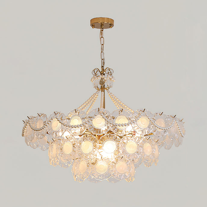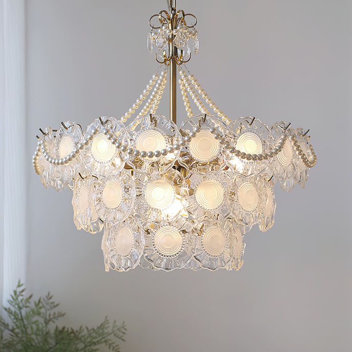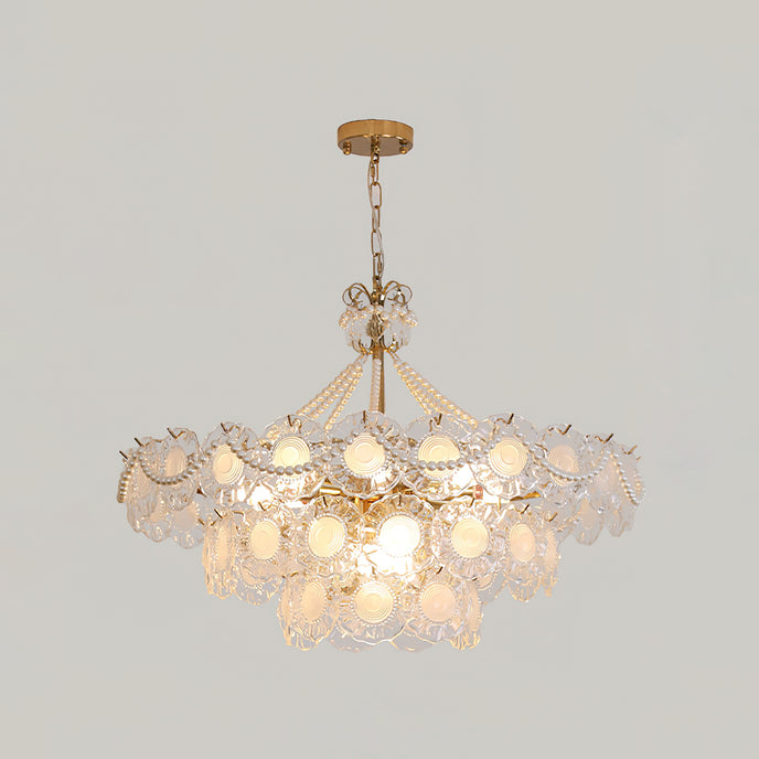 Bring timeless beauty to your home with this beautiful Pertid Pearls Chandelier from Mooijane. Crafted from sleek glass with a modern gold finish, this sleek, modern chandelier will add a sophisticated touch to any room. Its design provides ample lighting and makes a statement, making it the perfect addition to your home for years to come.