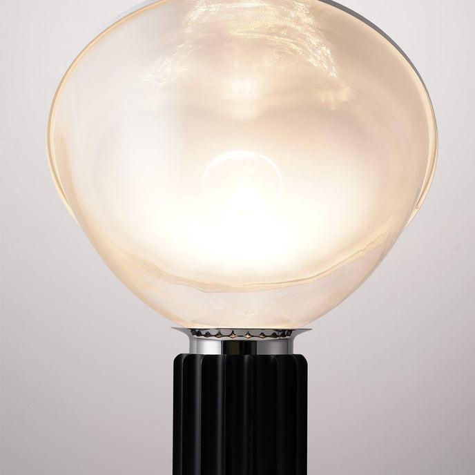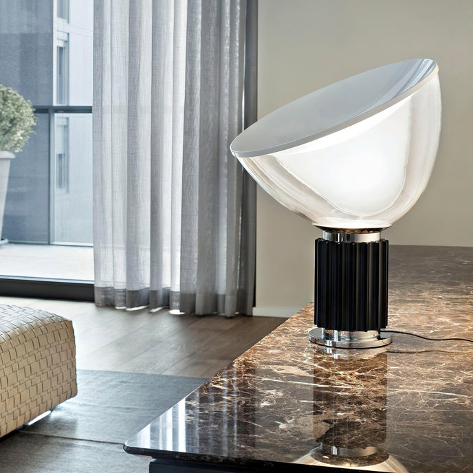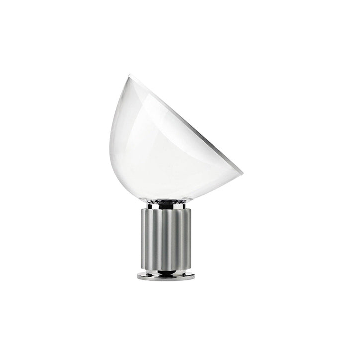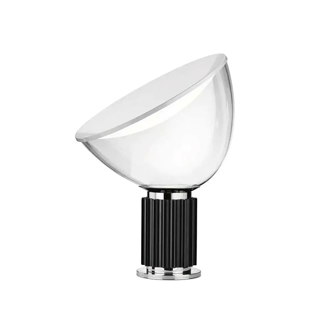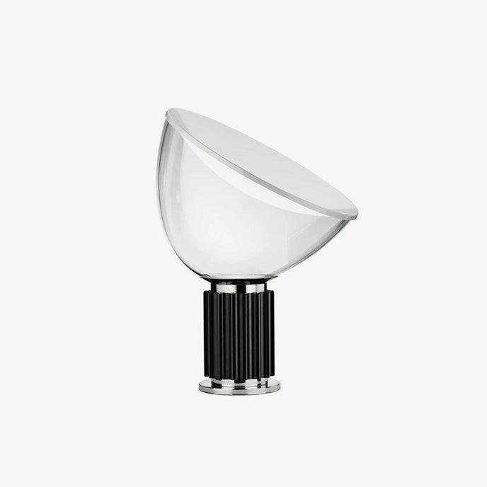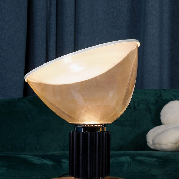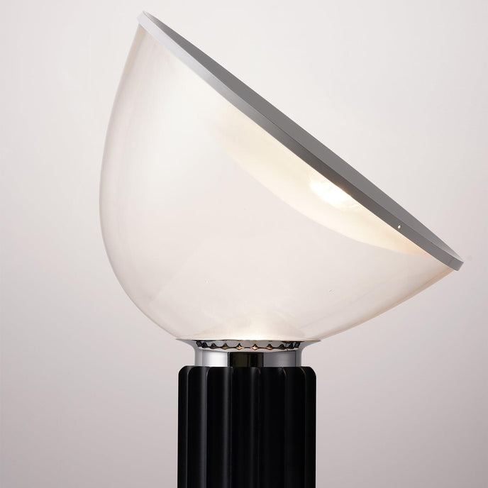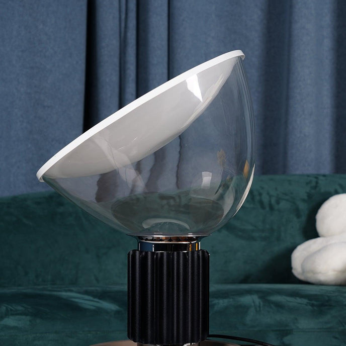 Easily change the direction of light with the Radar Glass Table Lamp. Its corrugated, extruded aluminum base effectively disperses heat and prevents glare, while the clear blown glass bowl acts as a soft diffuser. With a painted aluminum reflector and versatile industrial style, this lamp is a perfect addition to any interior.