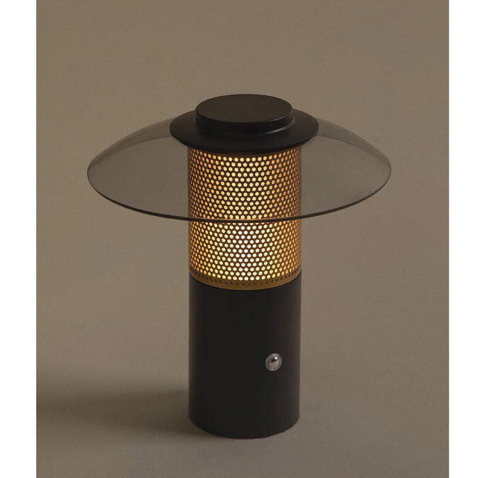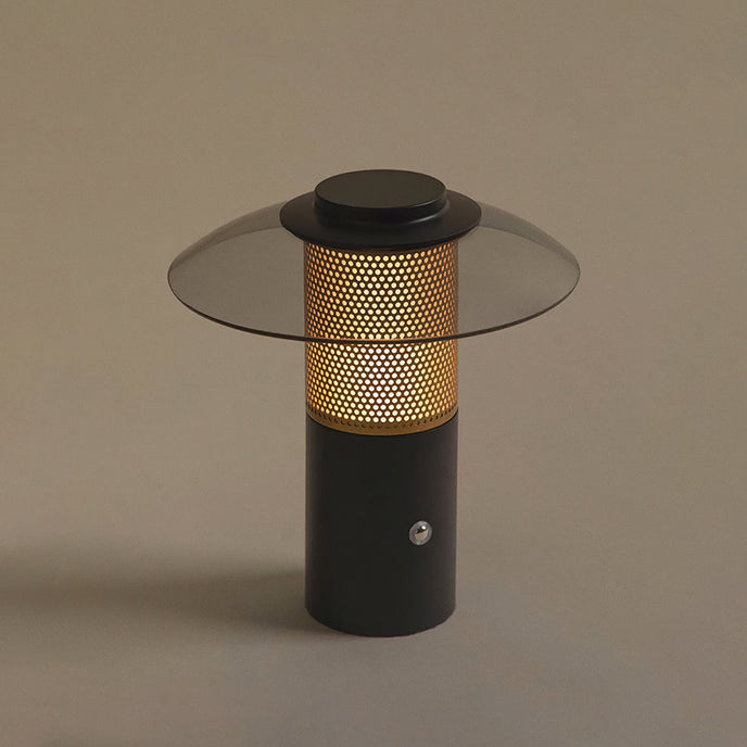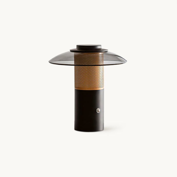 The Riscio table lamp by Mooijane seamlessly blends modern design with everyday functionality. Featuring a smoked glass shade and a matte black metal base with subtle perforated details, it exudes a refined industrial vibe. The built-in LED light creates a warm and inviting glow, making it an easy choice for creating a stylish ambiance in any bedroom, living room, or workspace.