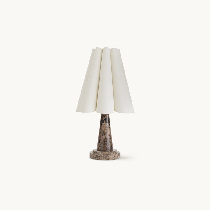 The Segal Table Lamp by Mooijane is a striking blend of charm and personality. Crafted from marble with a scalloped cylinder shade, its compact design adds a touch of retro flair to cabins, cottages, or modern apartments. A bold yet elegant accent that elevates any space.