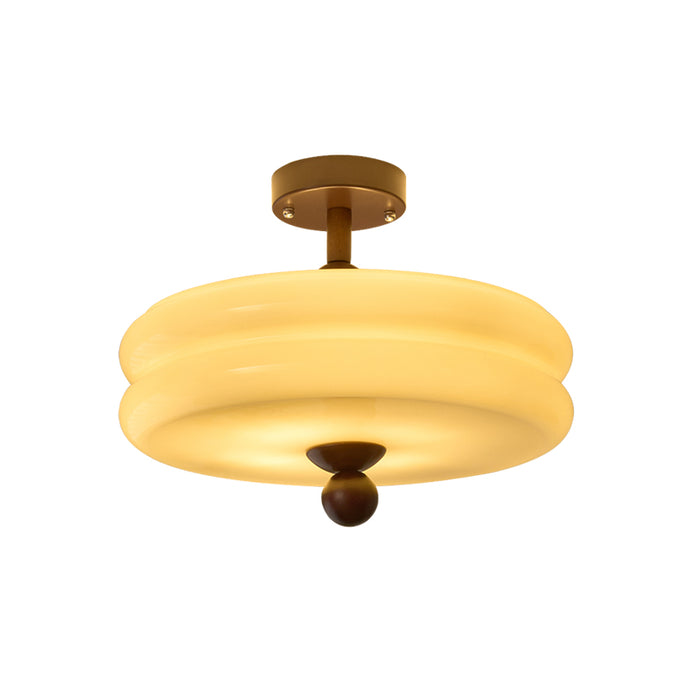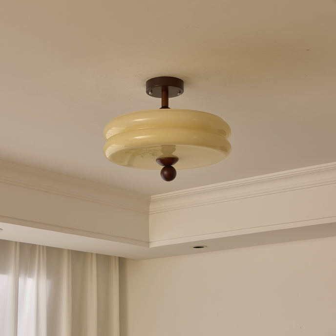 The Solara Ceiling Light from Mooijane adds a touch of Art Deco elegance to any space. Its beige glass shade, embellished with a delicate ribbed pattern, casts a soft, cascading glow. The metal stem and polished dark wood base complement the design, blending classic sophistication with natural warmth. Perfect for the dining room, living room, or bedroom, this ceiling light creates a warm and inviting atmosphere with its timeless charm and sophisticated style.