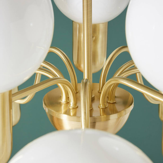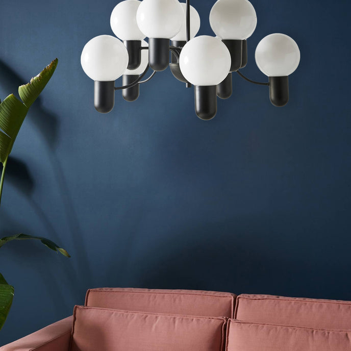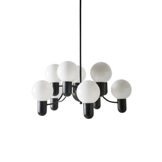 Dieser asymmetrische Kronleuchter wurde vom Designer exklusiv für Mooijane entworfen und erzeugt ein erhabenes, wolkenartiges Lichtspiel. Dieses aus sich kreuzenden Stahlrohren gefertigte und mit zehn Glühbirnen ausgestattete, auffällige Stück lässt sich mühelos dimmen und erhellen – passend zu jeder Stimmung, jedem Anlass und jedem Raum.