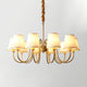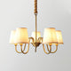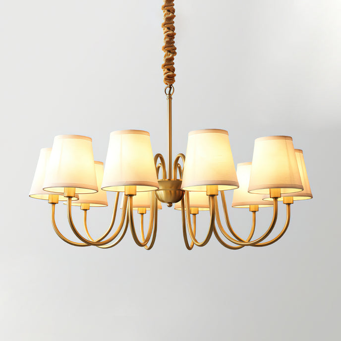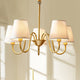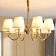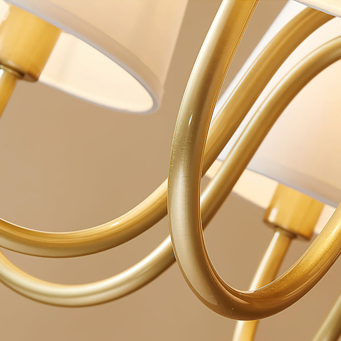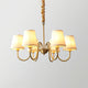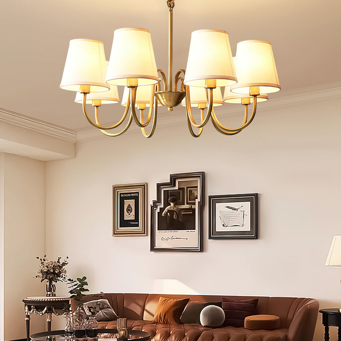 With its white fabric shade and classic brass finish, this traditional Sputnik chandelier is the perfect addition to any living room. With its indoor chandelier design and traditional style, this Sputnik chandelier is both stylish and functional. Upgrade your lighting with this elegant and creative piece.