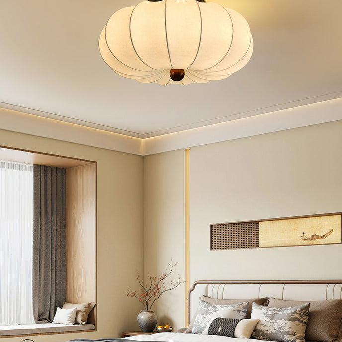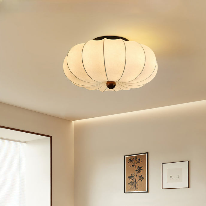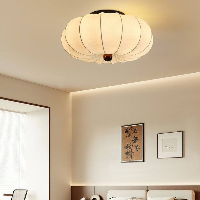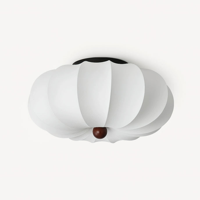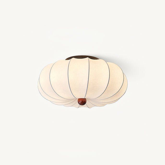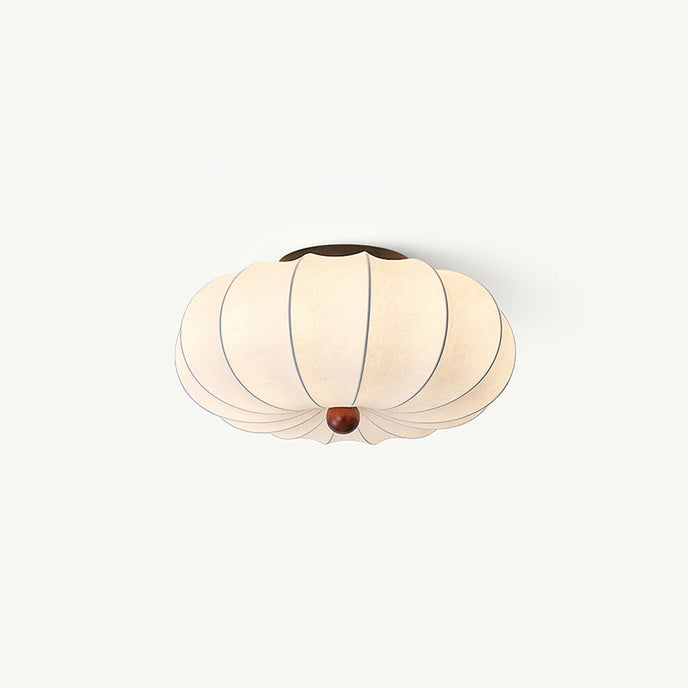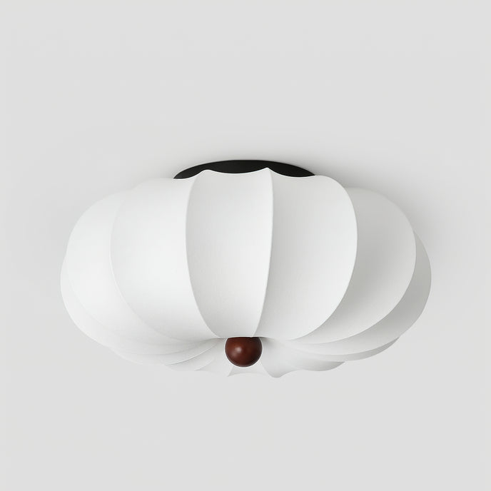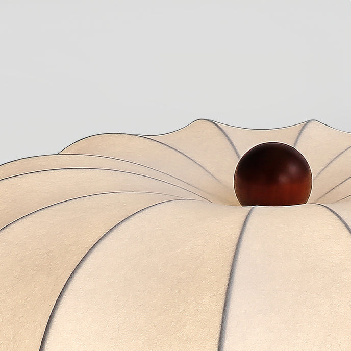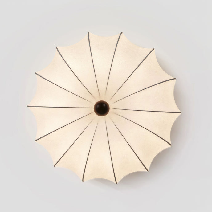 Inspired by the graceful form of a blooming lotus, the Aeron Ceiling Light from Mooijane blends natural materials with sculptural elegance. The lightweight silk shade features soft, flowing curves and a delicate texture, diffusing a warm, ambient glow. A solid wood sphere anchors the design, complementing the streamlined metal frame to create a balanced, retro-inspired silhouette.
