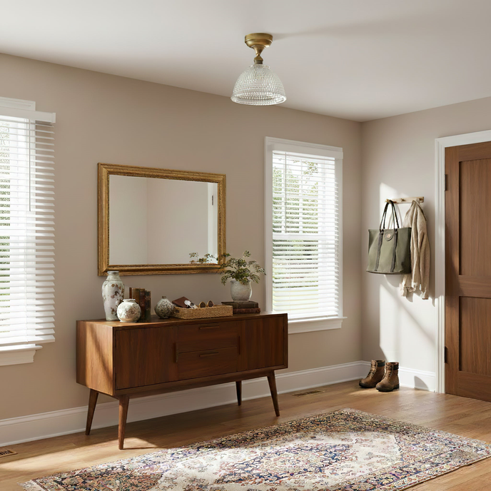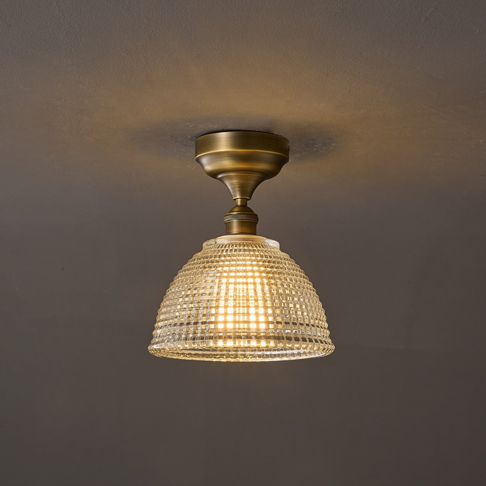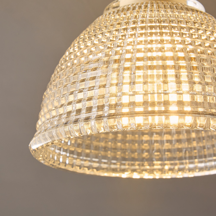 The Arietta Ceiling Light by Mooijane features a classic semi-recessed design that blends seamlessly with a wide range of interiors. Finished with a textured, dome-shaped glass shade, it casts a soft, welcoming glow and pairs beautifully with vintage-style bulbs. Ideal for bathrooms, bedrooms, hallways, or entryways.