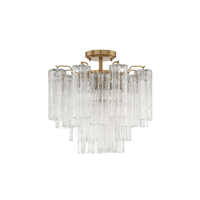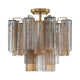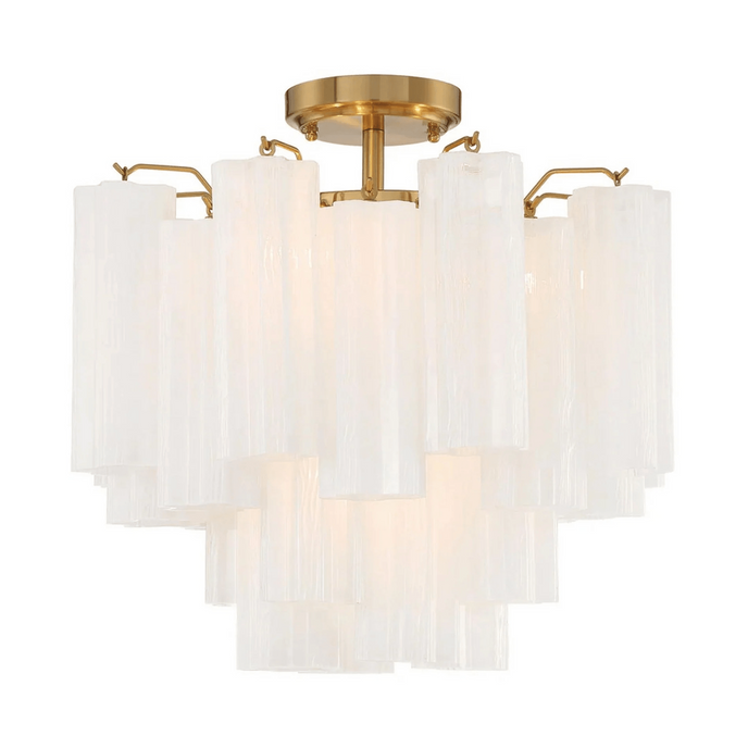 The Arras Tubular Ceiling Light by Mooijane showcases hand-blown Murano glass in rich brown tones, arranged in a cascading tubular silhouette that plays beautifully with light and shadow. Supported by a sleek metal frame, this ceiling lamp blends traditional craftsmanship with contemporary geometric design, making it a sophisticated centerpiece for dining rooms, grand foyers, or living spaces seeking an elegant sculptural statement.