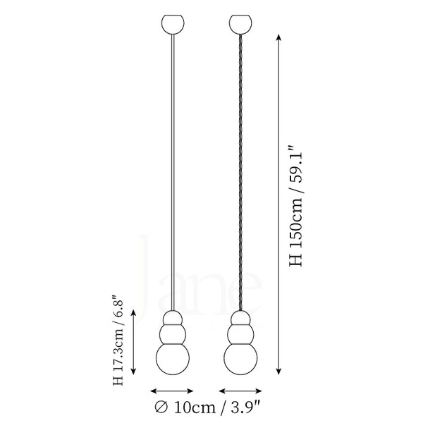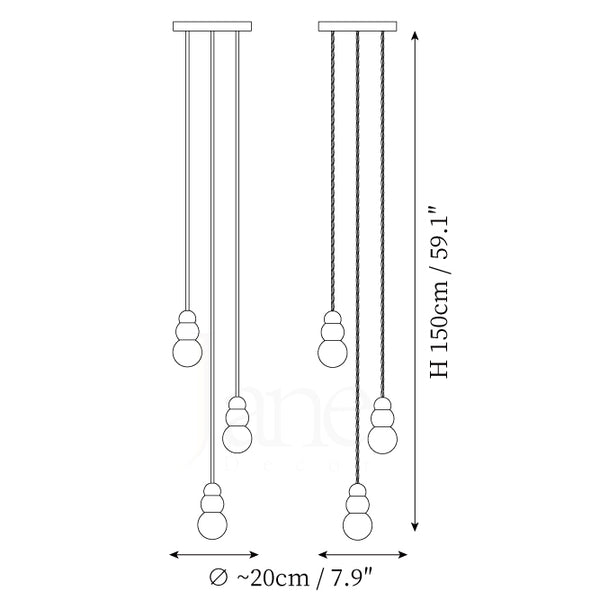 Nous fournissons des câbles de 150 cm / 59″ et des tuyaux de suspension en métal, qui peuvent être rallongés selon les besoins.