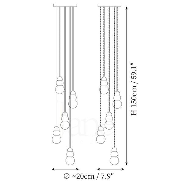 5 têtes grande taille : Dia 20cm x H 150cm / ∅ 7,9″ x H 59,1″