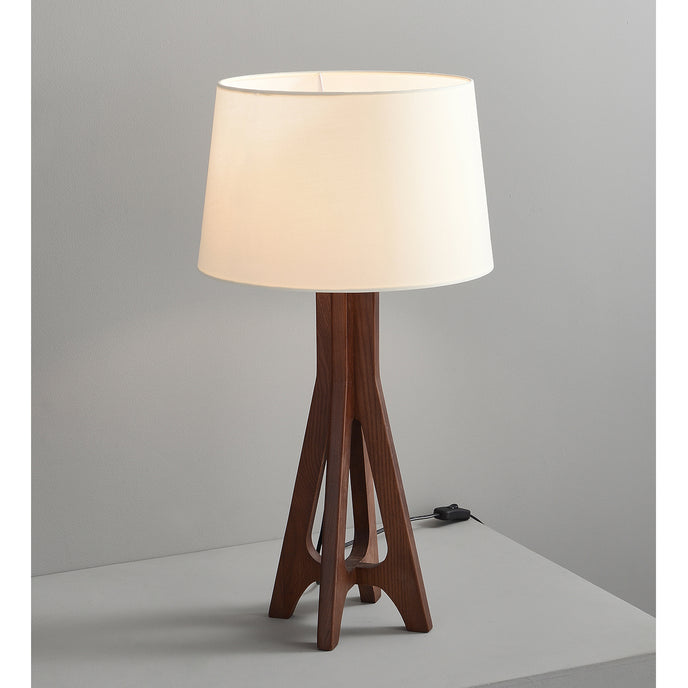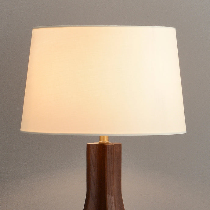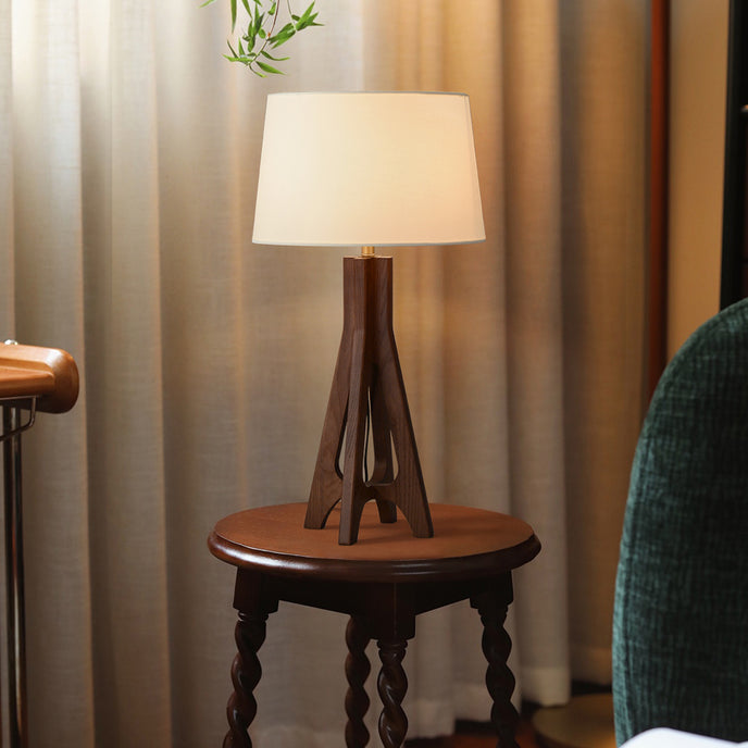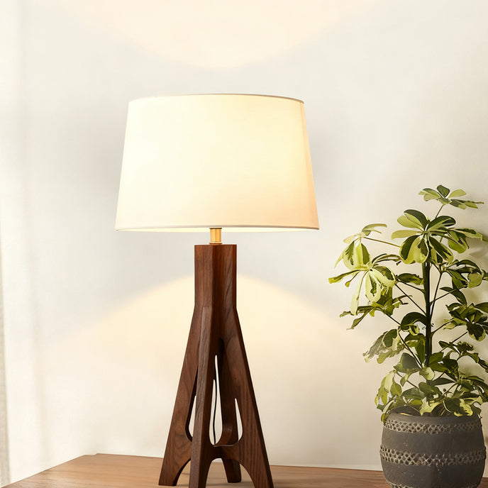 The Beckler Table Lamp from Mooijane showcases the perfect fusion of craftsmanship and modern design. Its sculptural wooden base, expertly crafted from solid wood, features clean lines and an openwork form that adds depth and visual lightness. The natural wood grain pairs beautifully with the soft fabric shade, which diffuses a warm, soothing glow.