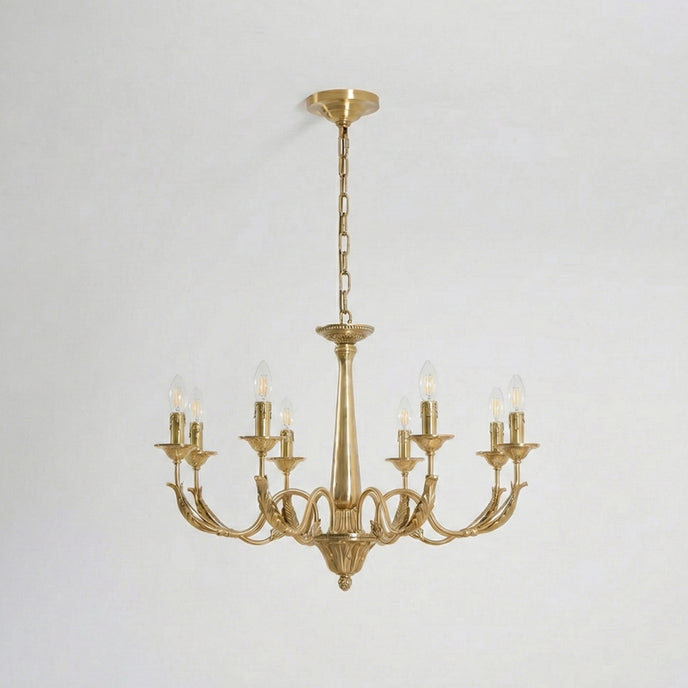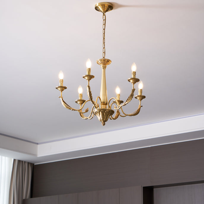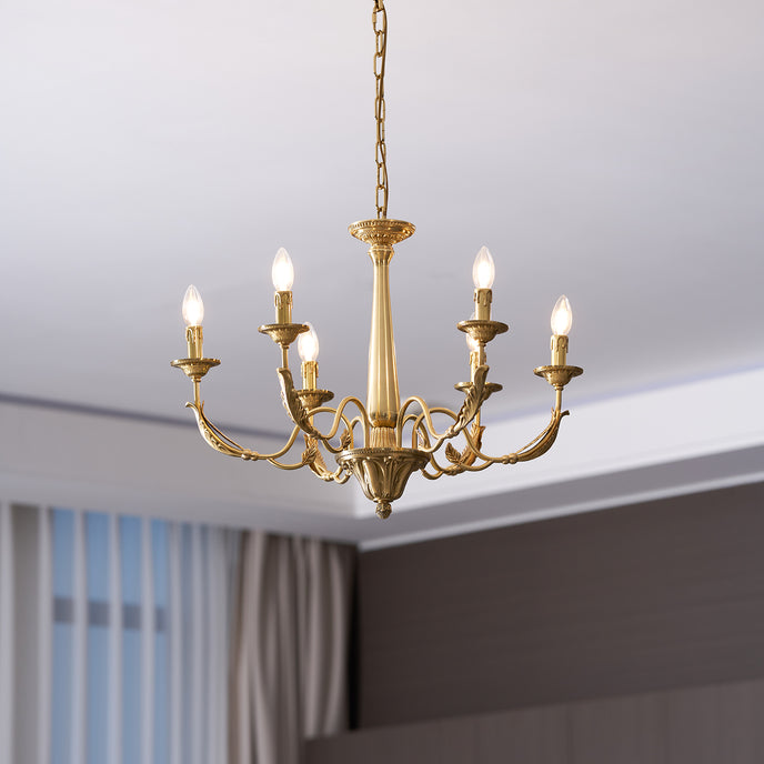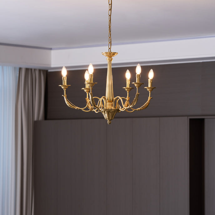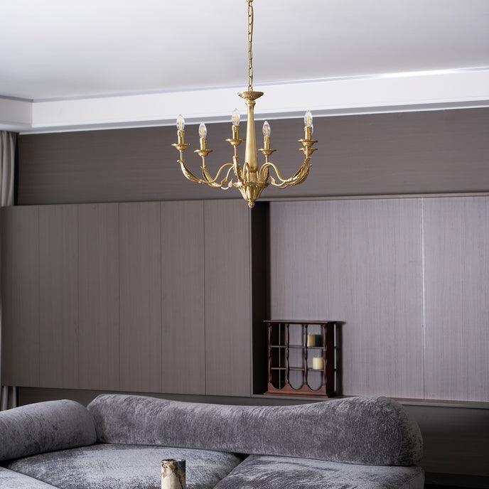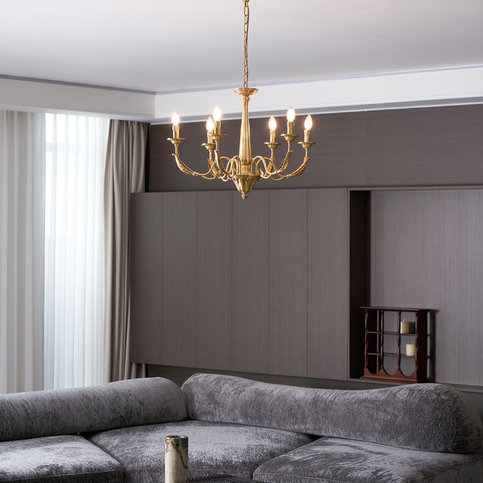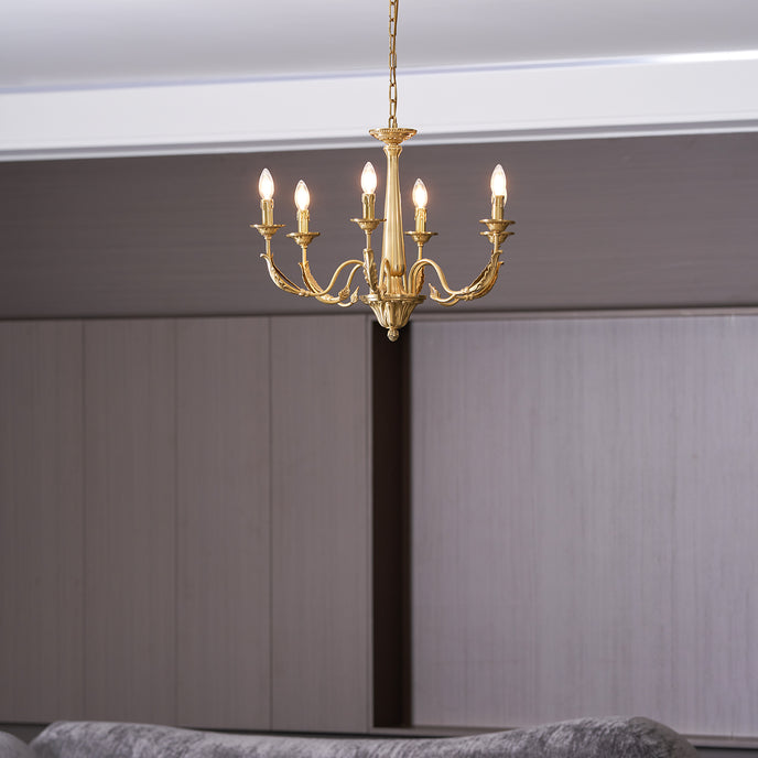 Enhance any space with our elegant Candle Brass Chandelier. Crafted from solid brass for a lasting touch of luxury, its classic American candle design creates a timeless atmosphere in any room. Make a sophisticated statement with this exclusive addition to your decor.