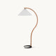 Ce lampadaire rétro du milieu du siècle a été conçu par le designer de Caprani Light. Cette lampe utilise un beau support en bois de hêtre aux courbes élégantes et une base en fonte. L'abat-jour est en lin.