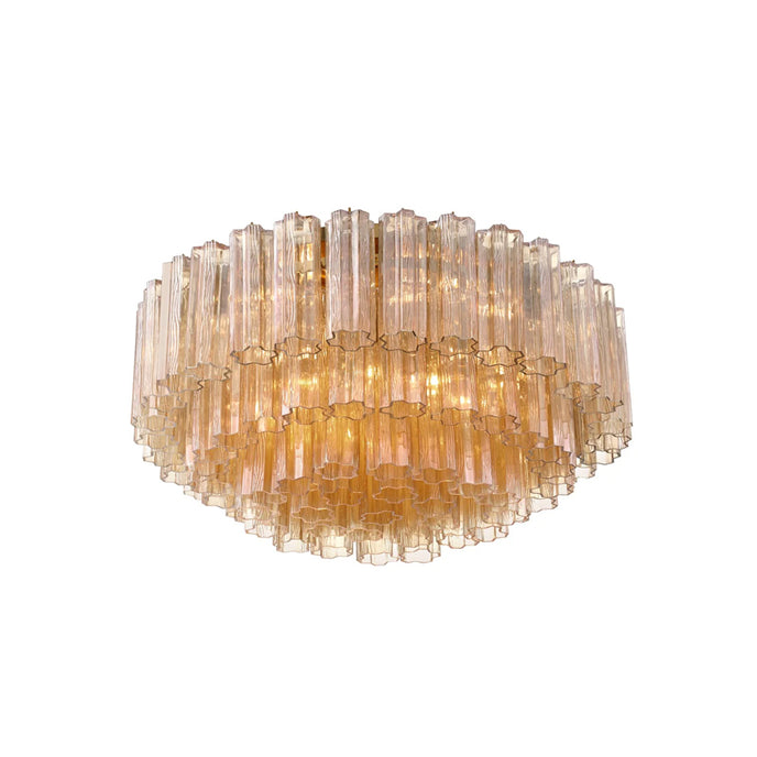 The Dalpat Ceiling Light by Mooijane reimagines a mid-century classic with cascading textured glass tubes forming a distinctive five-point star. Offered in clear, amber, smoked, white, and the exclusive Autumn glass color, it suits a wide range of interiors. Its refined metal frame and multiple sizes and finishes make it ideal for dining rooms, living spaces, bedrooms, or entryways. Combining timeless elegance with modern sophistication, the Dalpat Ceiling Light is a striking centerpiece that enhances any room.