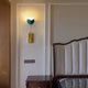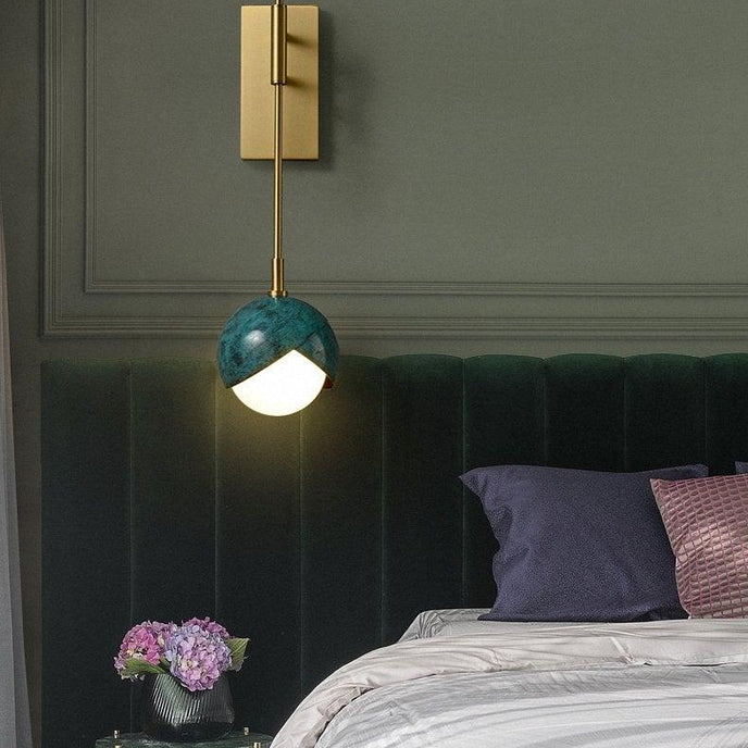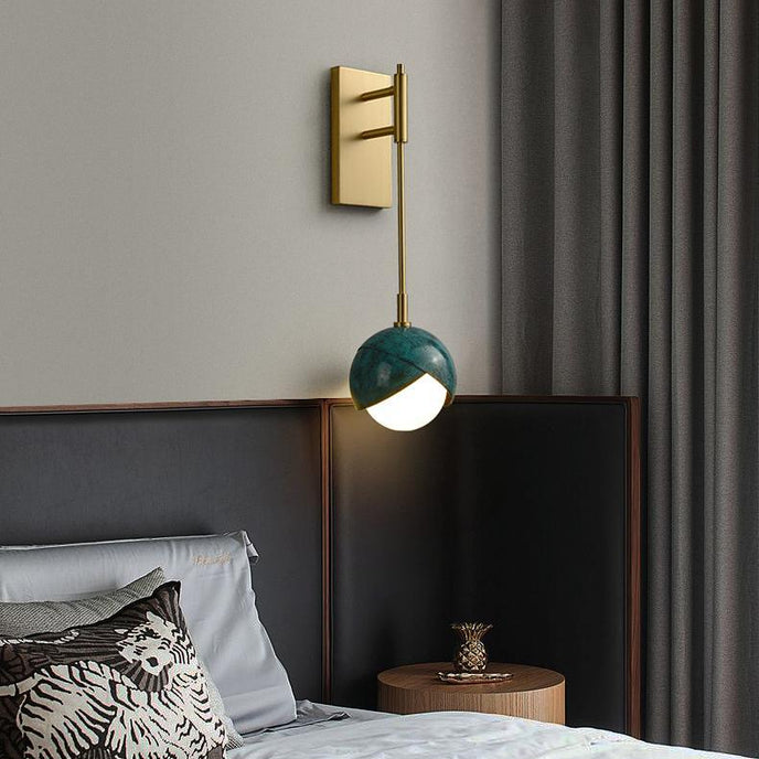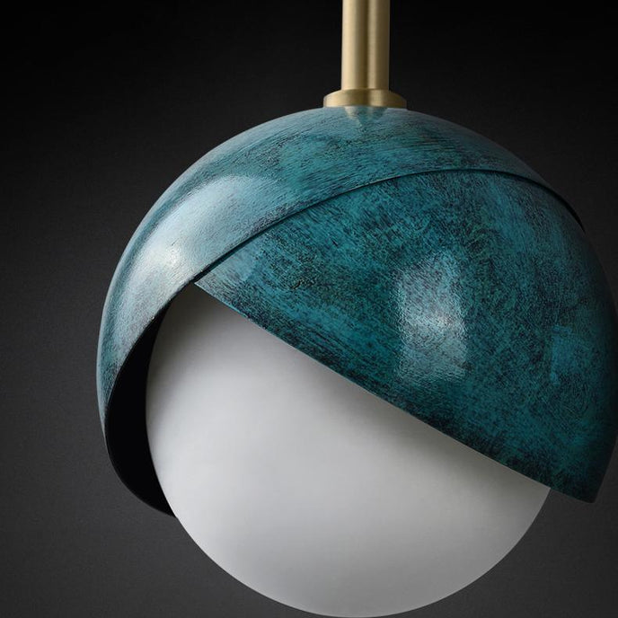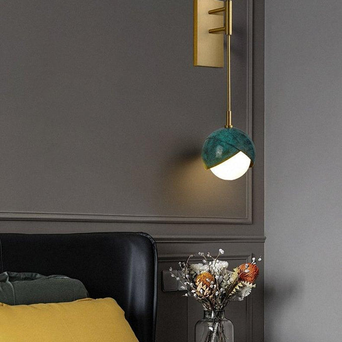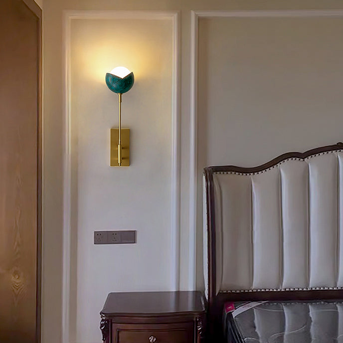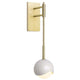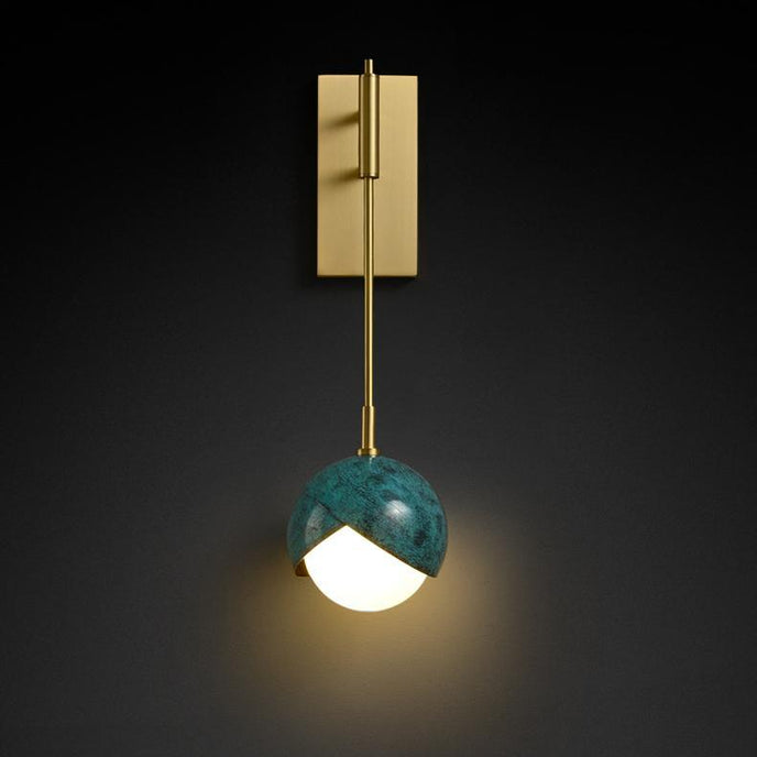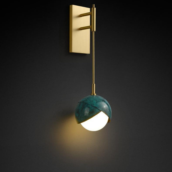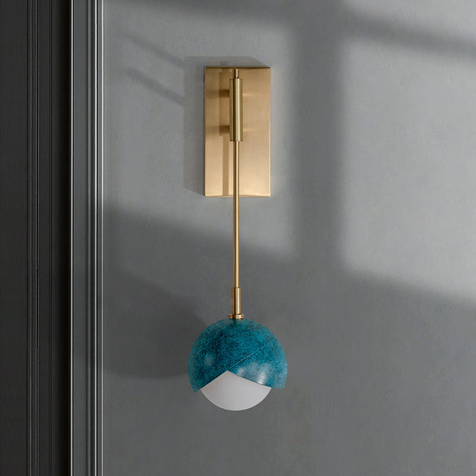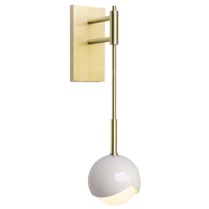 L'applique murale Benedict suspend une paire d'hémisphères en laiton imbriqués qui bercent un globe en verre opale blanc. La relation entre les hémisphères imbriqués et la tige permet des options de finition dynamiques sans fin pour compléter n'importe quel espace.