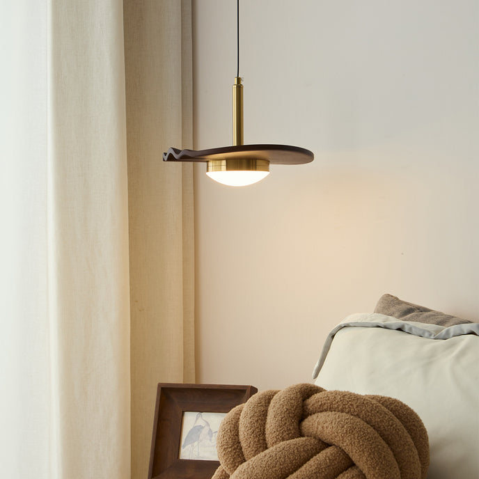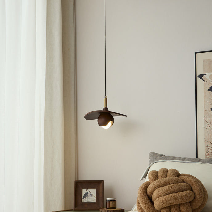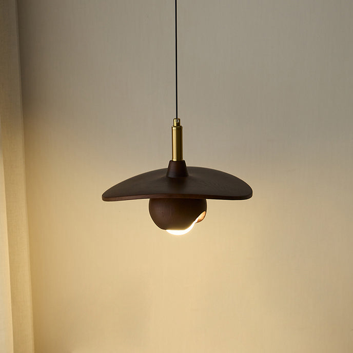 The Ebern Wood Pendant Lamp by Mooijane blends sculptural form with natural materials. Featuring a rounded solid wood sphere and gently curved wooden shade, its silhouette resembles a floating hat—lightweight yet refined. Suspended from a sleek metal fixture, it casts a soft, ambient glow that enhances both function and aesthetics. Perfect for entryways, dining areas, or cozy corners, Ebern adds warmth and modern elegance to any interior.