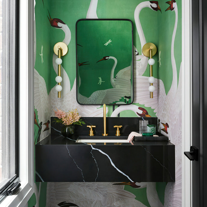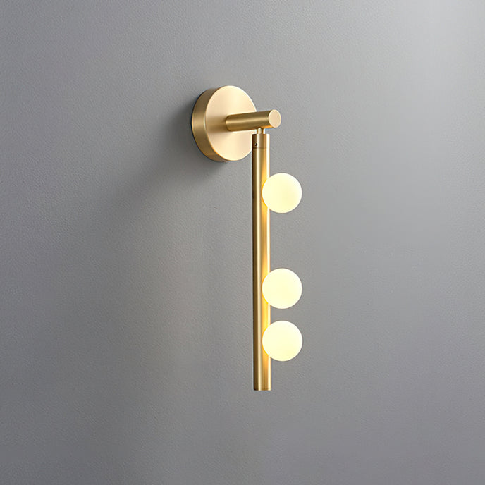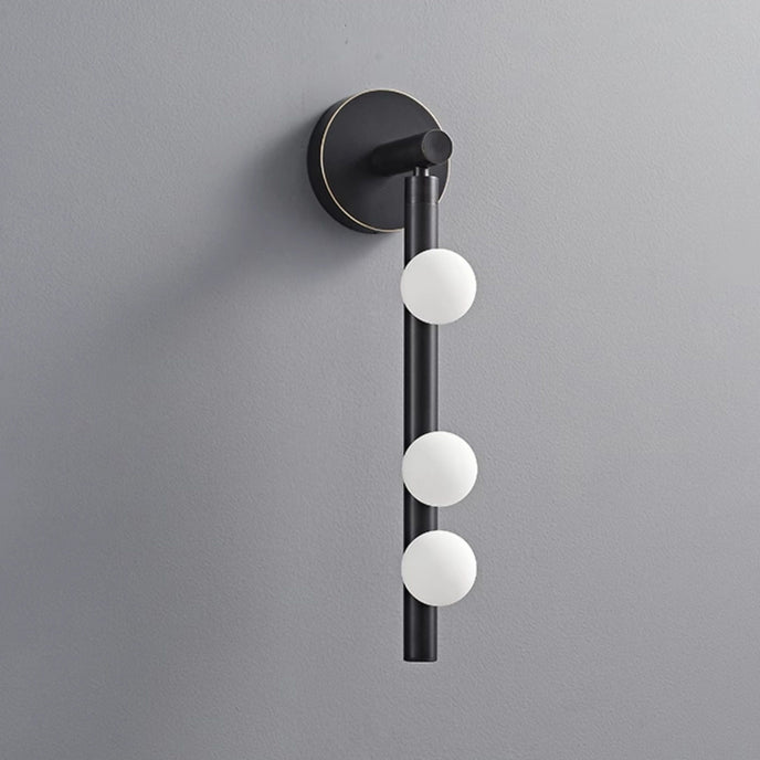 The Gaia Wall Light by Mooijane plays with contrast—structured brass tubes paired with luminous glass spheres to balance rigidity and softness. Its customizable configuration combines vertical and horizontal lines into a clean, sculptural statement, making it ideal for modern hallways, bedrooms, and living spaces.