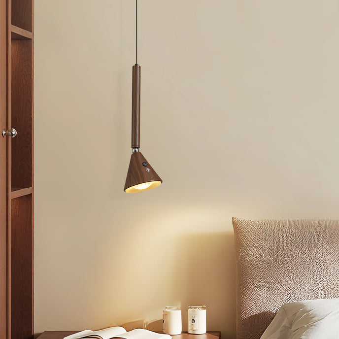 The Galeria Pendant Lamp by Mooijane combines modern simplicity with natural elegance. Its slender cylindrical form and tapered head, finished in rich dark walnut, create sleek lines and refined proportions. The wood grain lends a warm, organic glow, accented by subtle metal details. Emitting a focused, warm beam, it’s ideal for bar lighting, illuminating dining tables, or highlighting a reading nook. With its blend of contemporary design and natural texture, it adds sophistication and calm to any space.