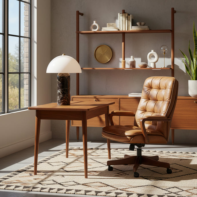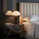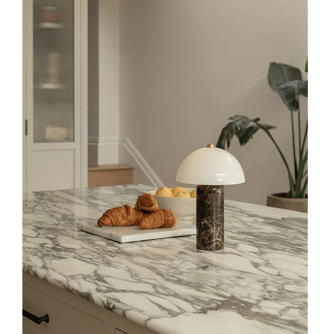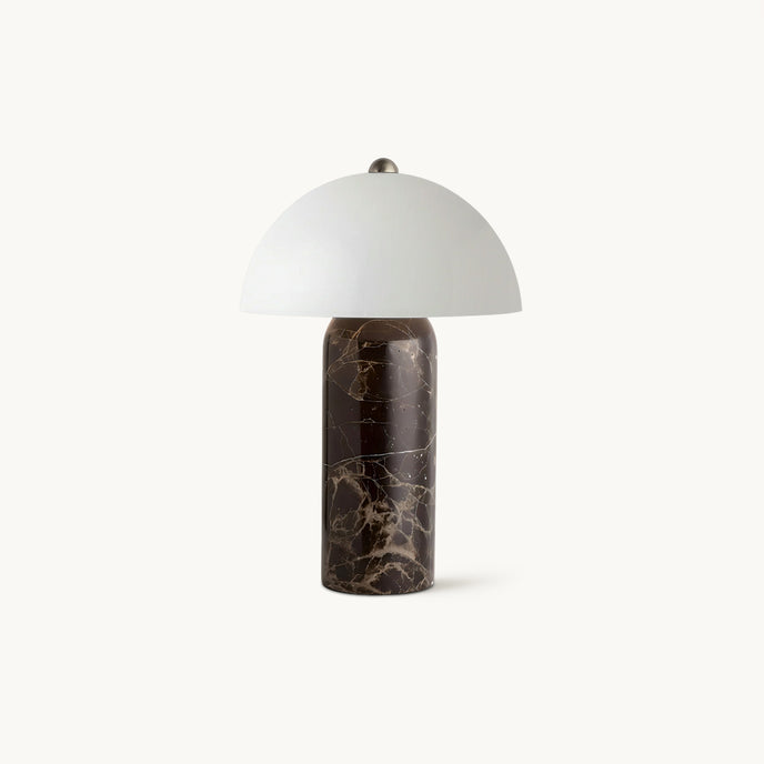 The Gubi Gravity Table Lamp by Mooijane combines sculptural simplicity with luxurious materials. Its cylindrical dark marble base with natural veining provides grounding elegance, while the smooth opal glass dome casts a soft, balanced glow. Topped with a small brass finial, this modern design is perfect for bedside tables, desks, or living room consoles, offering timeless sophistication and contemporary style.