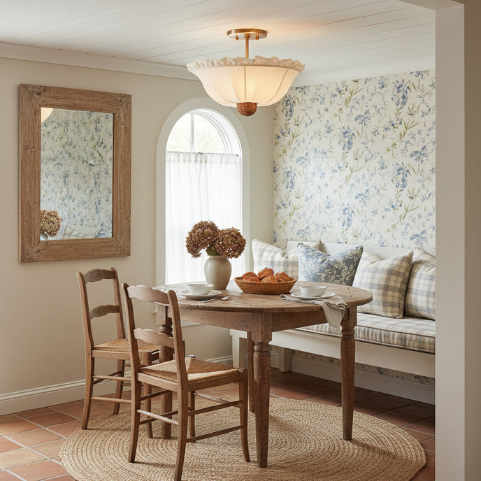 The Helmi Ceiling Light from Mooijane blends natural wicker accents with a parasol-inspired shade, creating an airy and timeless aesthetic. Its elegant silhouette and compact flush-mount design make it ideal for smaller spaces while maintaining a refined presence. Showcasing Mooijane’s signature warmth and thoughtful craftsmanship, the Helmi adds a touch of effortless sophistication to any interior.