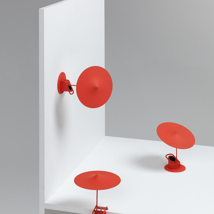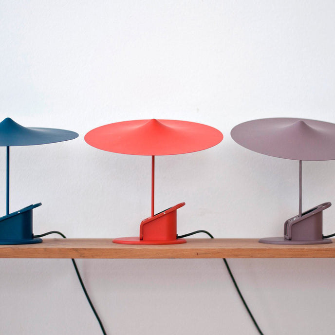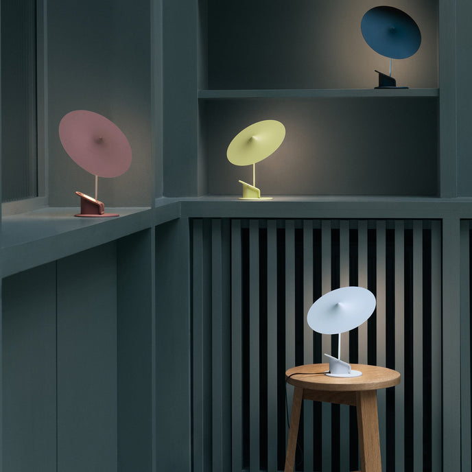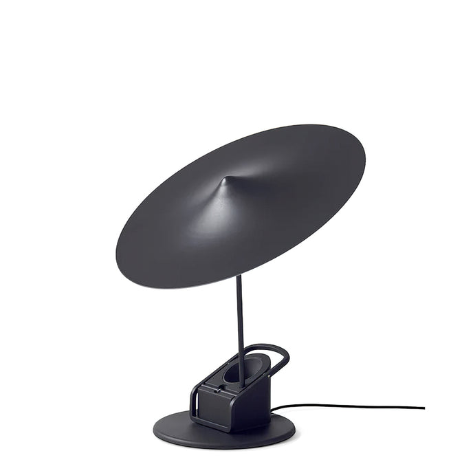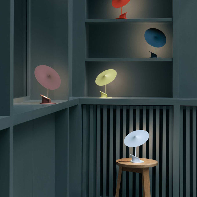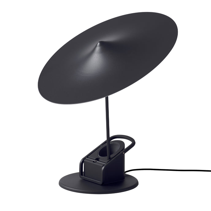 La lampe de travail réglable ILE comprend une base en aluminium peint, un réflecteur, une tige et un support de lampe de base. Un mécanisme à rotule magnétique sur le dessus de la tige permet un réglage en douceur de l'abat-jour. L'élément de base contient une source lumineuse LED dédiée.