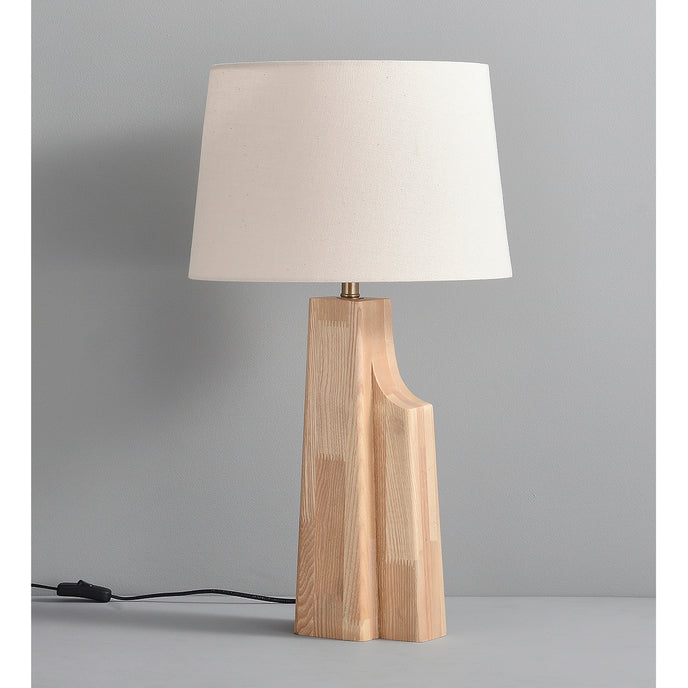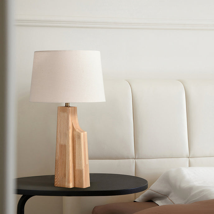 The Kecia Table Lamp from Mooijane blends natural wood and soft fabric to achieve a warm yet refined aesthetic. Its solid wood base features clean lines and gentle curves, accentuated by a subtle grain that adds organic character. Paired with a beige fabric shade, it emits a soft, soothing glow that enhances the tranquility of any space.