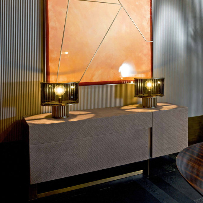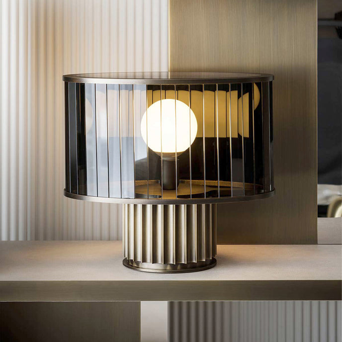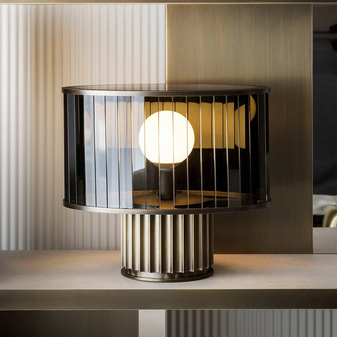 La collection italienne innovante Liberty se caractérise par la base raffinée en forme de colonne, une élégante extrusion d'aluminium finie en bronze. Cette lampe à poser design est livrée avec un élégant diffuseur en verre disponible en finition fumée. Polyvalent et sophistiqué, cet éclairage italien se démarquera dans n'importe quel espace de vie Glamour. Gamme de lampes caractérisée par la base en forme de colonne, Abat-jour disponible en verre fumé ou en tissu ou de forme ronde.