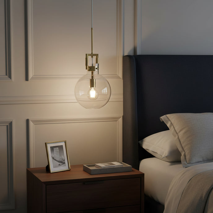 Une étude de l'espace positif et négatif, de la densité et de l'ouverture, de la force et de la fragilité, notre Pendentif Machiniste est une exploration du yin et du yang. Fabriqué en métal massif, l'empiècement géométrique révèle son inspiration industrielle. En revanche, le contour en verre clair est à peine là, faisant écho à la forme d'un abat-jour. Une ampoule Edison ultra-mince logée à l'intérieur révèle des filaments de lumière saisissants.