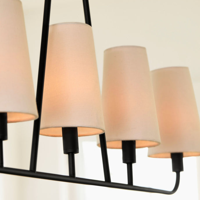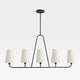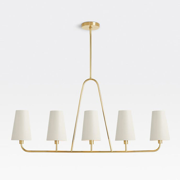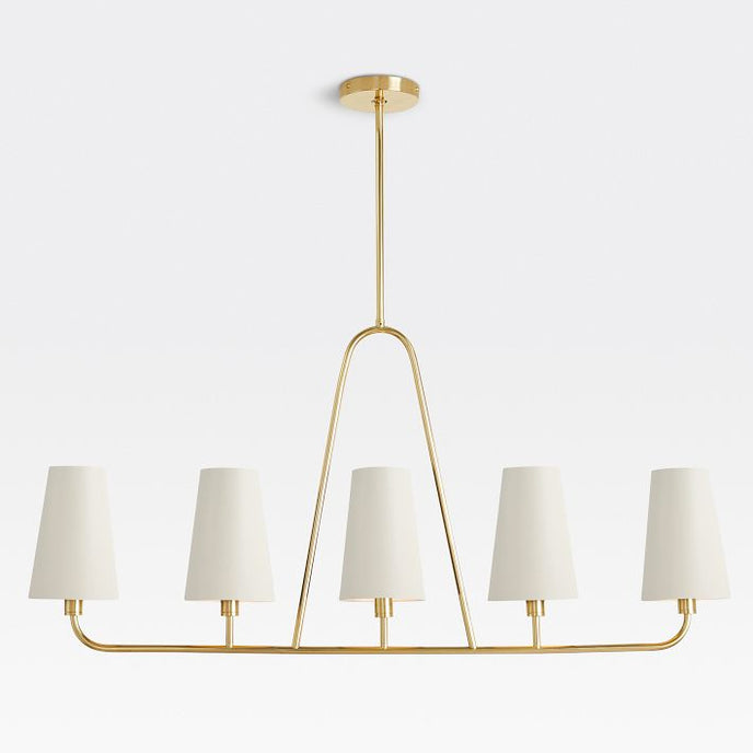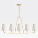 Experience sophisticated elegance with the Meridian Chandelier from Mooijane. Featuring a sleek brass frame and five sophisticated white fabric shades, this lamp combines warmth and sophistication. Its minimalist design makes it the perfect finishing touch to any interior, providing soft, ambient light and timeless appeal.