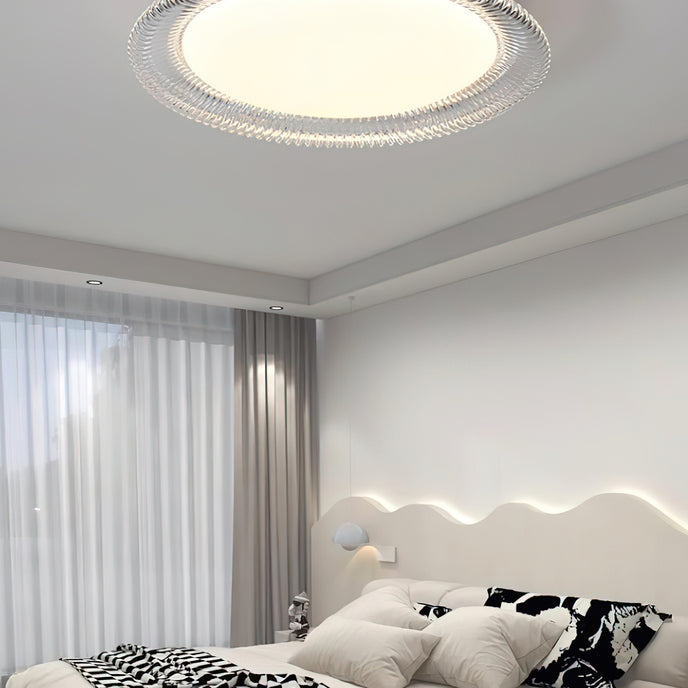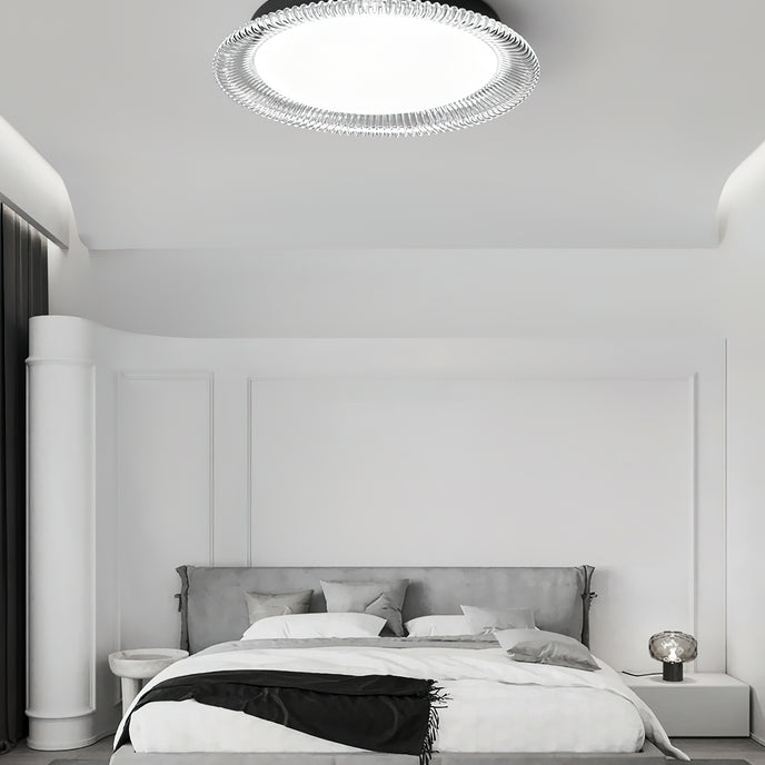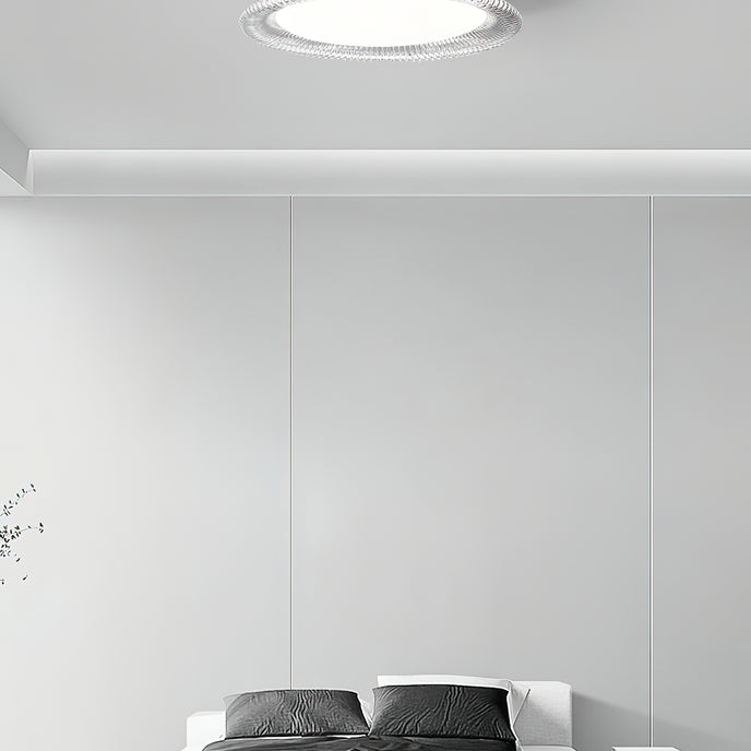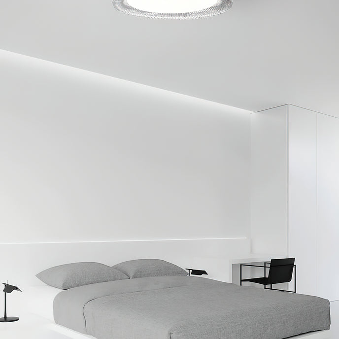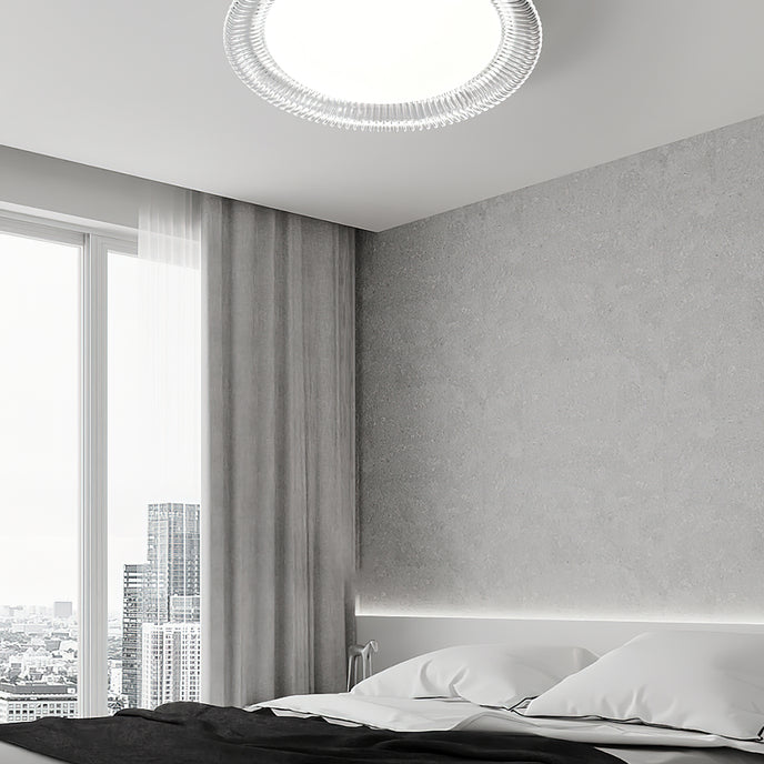 This lamp combines a sturdy aluminum frame with a unique acrylic engraved design to create a unique ring-shaped appearance. Light is emitted through the engraved acrylic, bringing delicate light and shadow changes to the interior while showing a simple, modern aesthetic.