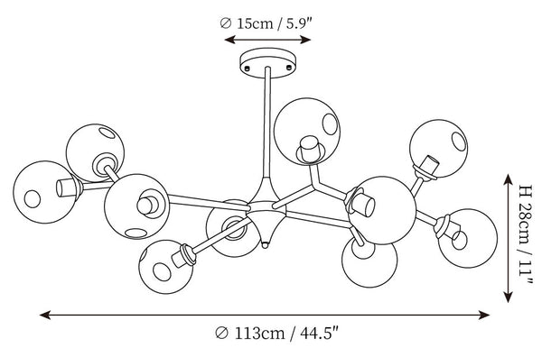 • 10Heads Size: Dia 113cm x H 28cm / ∅ 44.5″ x H 11″