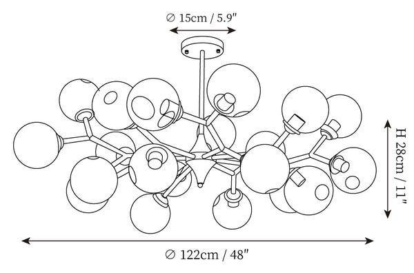 • 15Heads Size: Dia 106cm x H 28cm / ∅ 41.7″ x H 11″