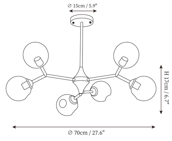 • 6Heads Size: Dia 70cm x H 17cm / ∅ 27.6″ x H 6.7″