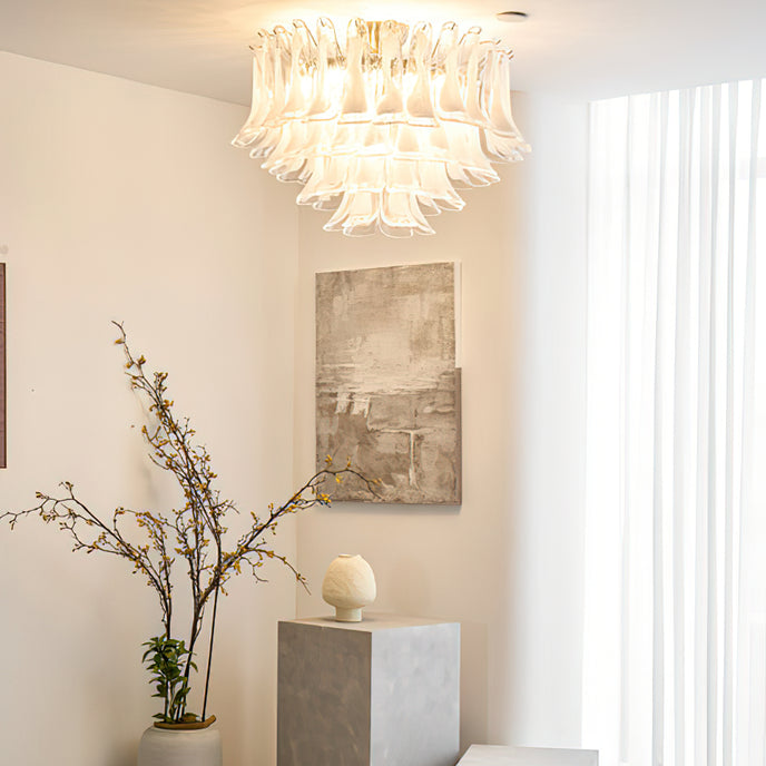 Indulge in sophistication with the Murano Glass Leaf Ceiling Lamp from Mooijane. Handcrafted in Italy, this exquisite piece features intricate design and premium glass for a timeless elegance. Elevate your space and add a touch of artistry with this true masterpiece.