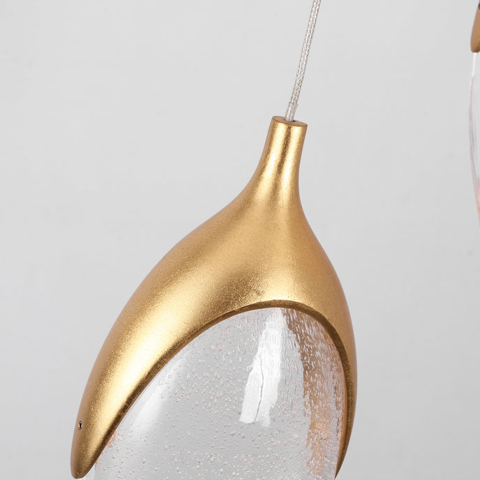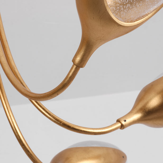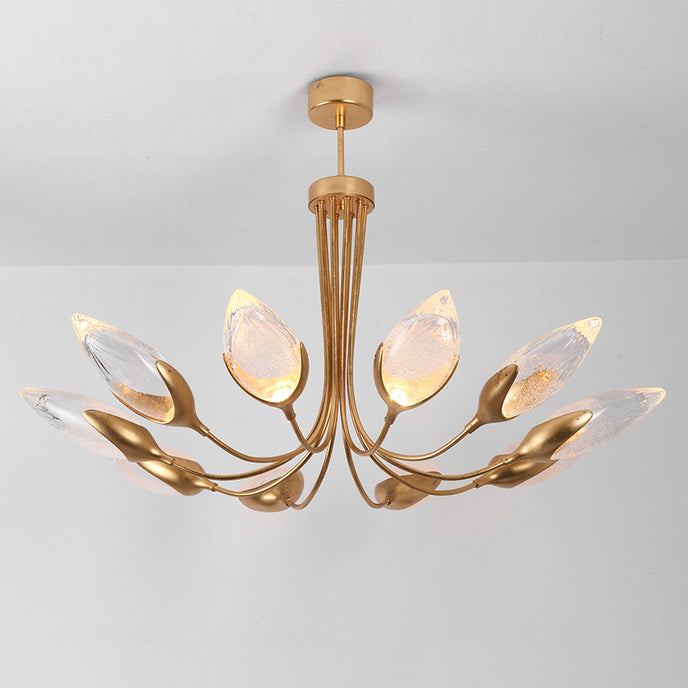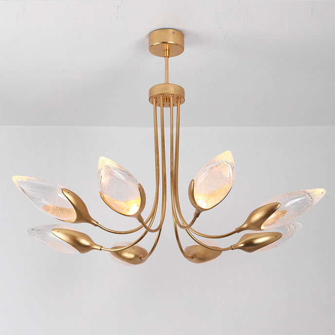 The Nicholas Glass Chandelier from Mooijane draws inspiration from the natural form of olives, symbolizing resilience and vitality. Its elegant design pairs luminous glass elements with rich gold-foil finishes, creating a radiant centerpiece that captures light beautifully. Refined yet expressive, the Nicholas adds warmth, depth, and sculptural elegance to dining rooms, living spaces, or grand entryways—bringing a timeless sense of sophistication to any interior.
