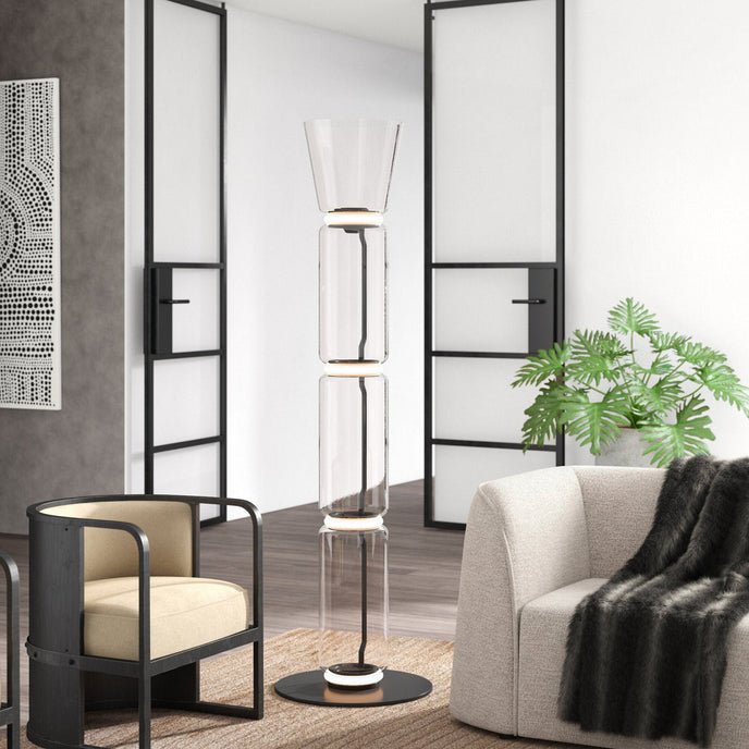 Les cylindres, le cône, le dessus du bol et la grande base du lampadaire LED à intensité variable Noctambule peuvent être configurés comme une lampe suspendue ou un lampadaire, selon les besoins et les préférences. Ses capacités de gradation peuvent être réglées via le bloc d'alimentation dans la rosace de plafond ou via un panneau à pédale fourni sur le cordon d'alimentation. Le corps cylindrique de la lampe moderne est disponible en hauteur basse et haute, tandis que les utilisateurs peuvent choisir entre la tête en forme de dôme ou la tête en forme de cône pour une source de lumière plus directe.
